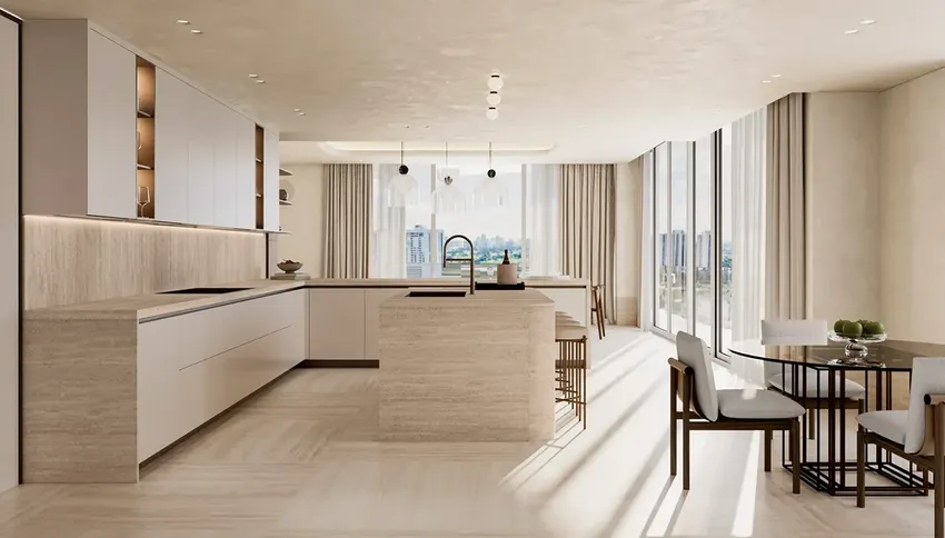 The residences at Avenia Aventura seamlessly combine fashion-forward traditions with innovative solutions. Every interior is meticulously designed to create an ambiance of comfort and sophistication. European materials inspired by the South Florida palette highlight modern chic and spatial harmony.