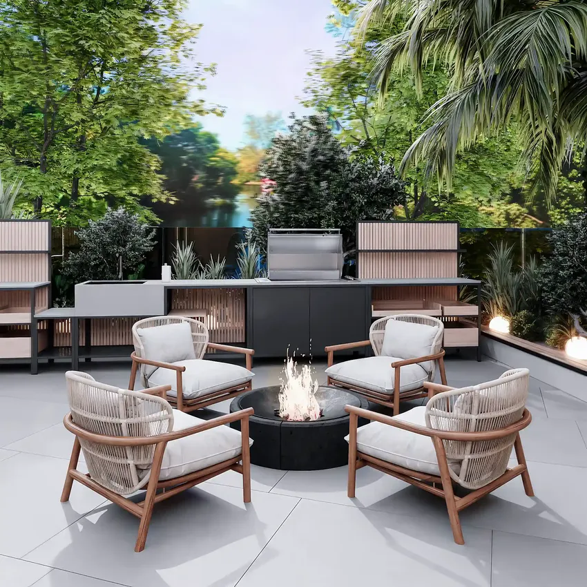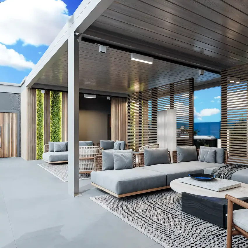 Enjoy seamless indoor-outdoor living with lush terraces and elegant outdoor seating, perfect for basking in the Florida sun.