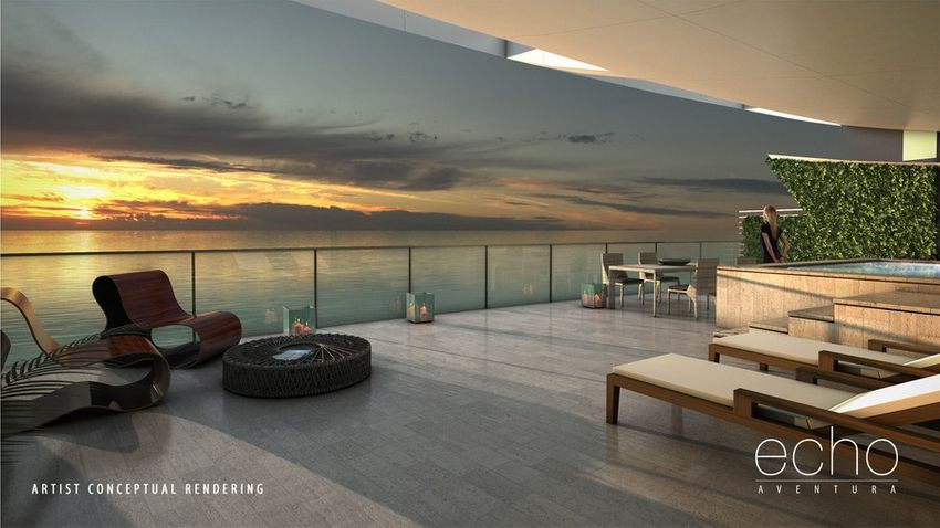 The amenities of ECHO Aventura promise to be unprecedented and will include a bayfront infinity-edge pool with vistas of the Atlantic Ocean, a breakfast and lunch club room with poolside food and beverage service, as well as a state-of-the-art fitness center and yoga studio. The development features an atrium event room with floor-to-ceiling windows and an enchanting rooftop garden accessible by a glass elevator. The services at this modern jewel will not disappoint even the most demanding buyer. Enjoy complimentary pet walking, five-star international concierge services, full on-site maintenance, poolside food and beverage service and round-the-clock valet.