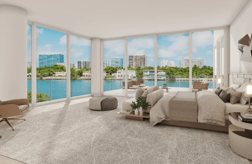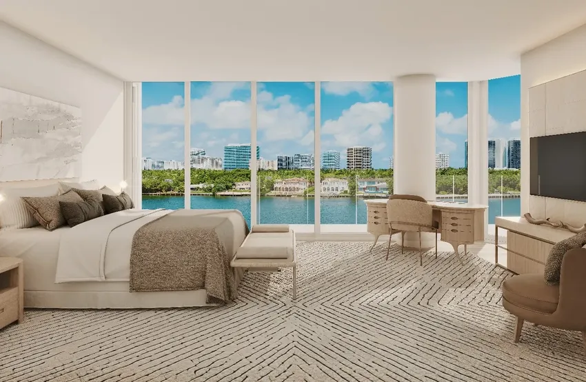 La Mare Bay Harbor's luxury residences with direct bay views impress with spacious and contemporary floor plans featuring large walk-in closets, ample storage, majestic ceilings, panoramic floor-to-ceiling windows, and glass terraces with outdoor room features without a solid wall.