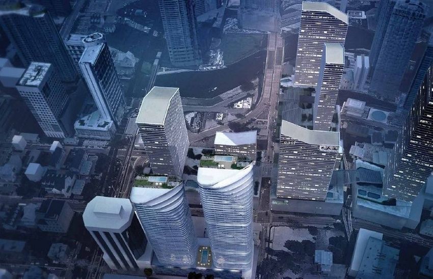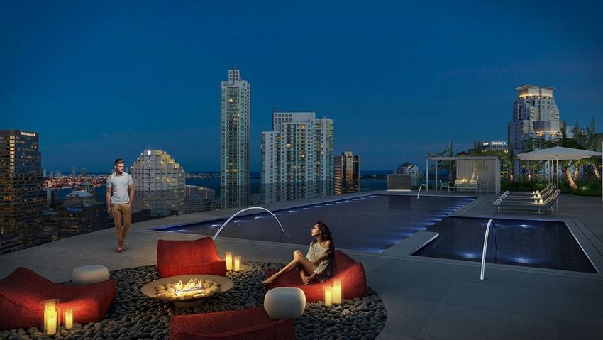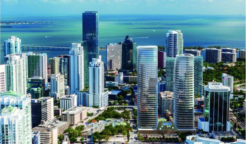 The Arquitectonica-designed two tower project sit atop a 30,000 sq. ft. state-of-the-art Equinox gym and a colossal parking garage. Rooftop pools at the top of each building come with panoramic views of Miami City, the Miami River and Biscayne Bay.