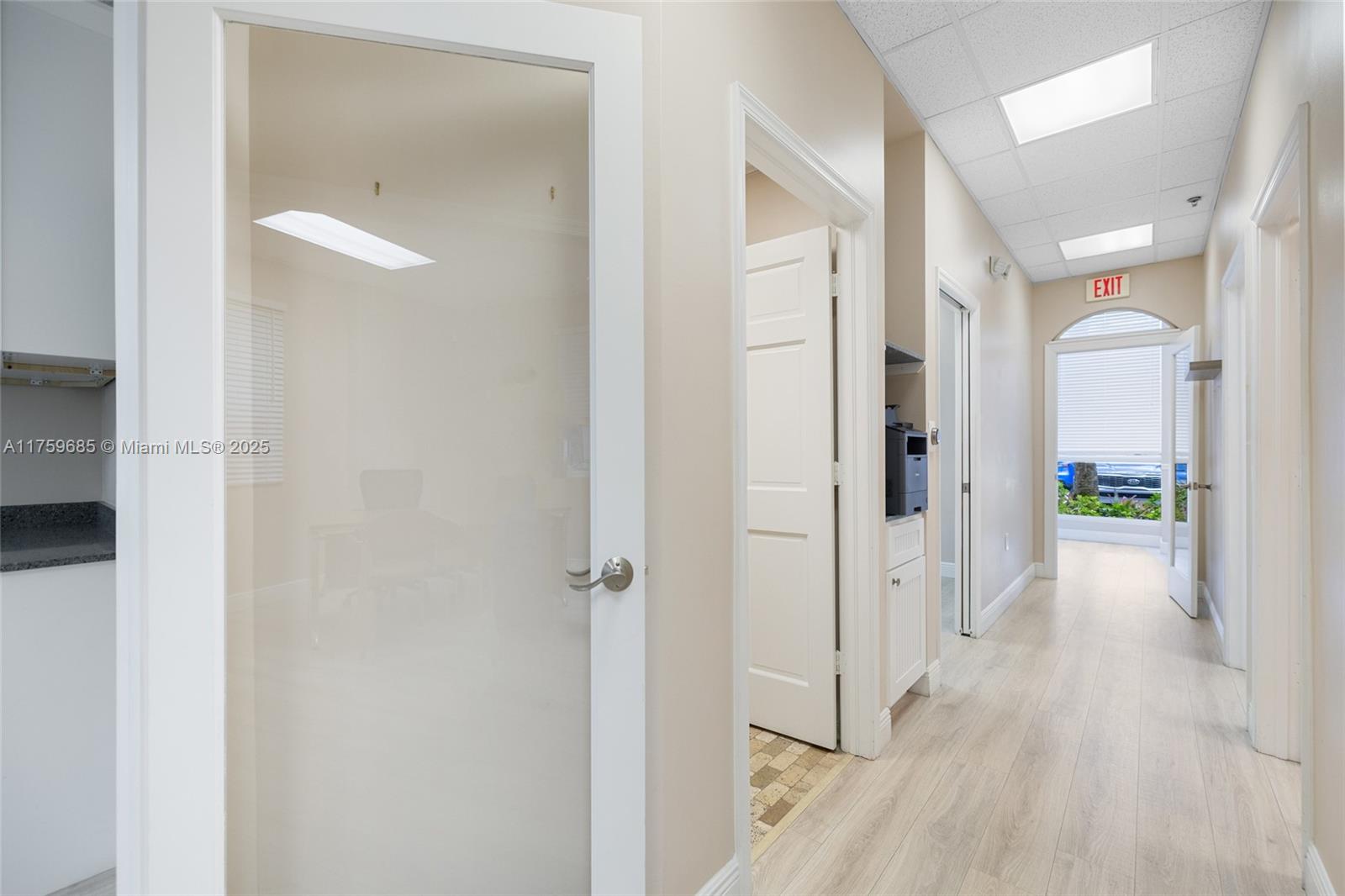 Turnkey Corner Office Condo in Plantation! This 964 sq. ft. professional office is move-in ready and includes furniture in the sale (excluding artwork). The well-designed layout features four private offices, a welcoming reception area, a kitchenette, a private restroom, and a storage room. Elegant wood flooring and large impact windows create a bright, professional atmosphere with storm protection. Additional highlights include a dedicated A/C system, sprinkler system, and a newly replaced roof. Perfect for medical, legal, financial, or professional services, this prime corner unit is located in a thriving business district with ample parking and easy access to major roadways. Don’t miss this rare opportunity to own a fully furnished office in a sought-after commercial area!