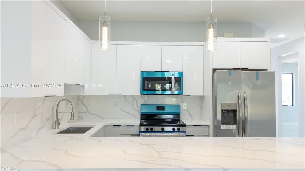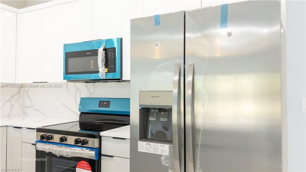 OFFERING CONCESSIONS FOR CLOSING COSTS!!! This outstanding income opportunity in Lehigh Acres presents a rare chance to own a brand-new, high-income-producing duplex. The seller is open to negotiations. This spacious duplex features six bedrooms and four bathrooms, designed with modern elegance and high-quality finishes. The interior boasts ceramic tile flooring, a sleek kitchen equipped with stainless steel appliances, white wood cabinetry, and brushed nickel handles. Fans are installed in all living areas, Waterfall kitchen countertops, bathroom vanities, backsplash, and window sills are all crafted from sophisticated Quartz. Additional features include a garage with Kilz epoxy imitation painted flooring, gutters and soffits surrounding the property.