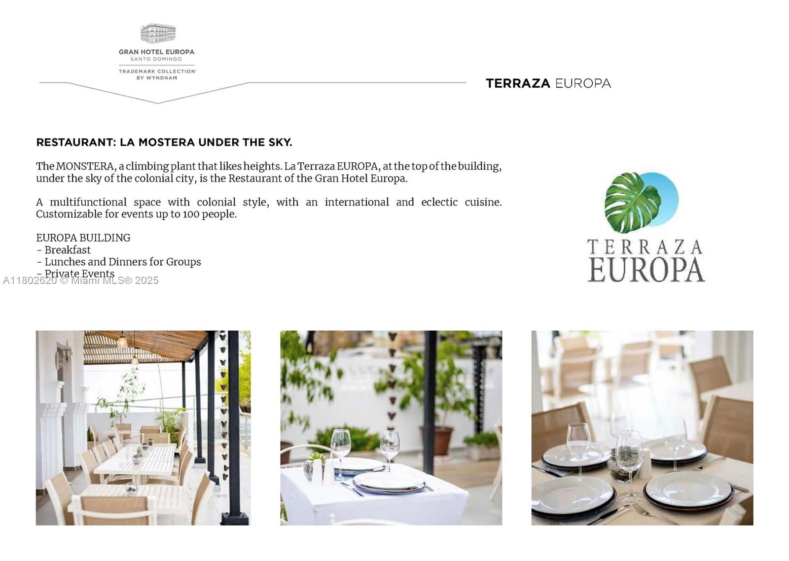 Hotel Gran Europa. Its unique location in the heart of the Colonial City of Santo Domingo allows easy access to all the services of the area. 93 rooms, divided into 2 historic buildings, modern and vintage, the Gran Hotel Europa is positioned as one of the largest capacity hotels in the Colonial City, with a unique proposal for groups, as well as a perfect location for individual travelers, business people, and long stays. The main building, old, recently restored, has 50 rooms, which join the 43 rooms of the contemporary building completely rebuilt in 2021. The 2 buildings add 2 large connected terraces, the roof top SKY EUROPA, a lounge bar with its own soul, and the TERRAZA EUROPA restaurant where breakfast is served every morning to the guests of the Gran Hotel Europa.