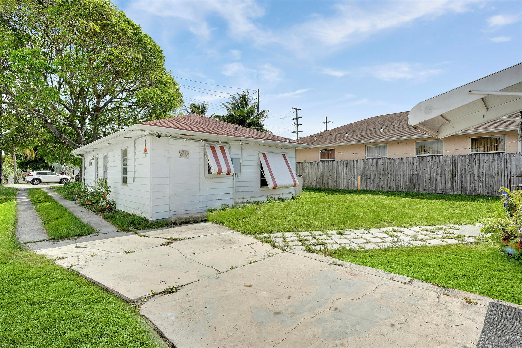 Great income-producing opportunity! Two single-family homes on a large lot in a non-HOA Lake Worth Beach community. A beautiful mature mango tree welcomes you home. The front house offers 2 bedrooms, 1 bath, a new roof, and many updates, currently rented for $1,800/month. The rear home features 3 bedrooms, 1 bath, a new roof, upgrades, and is owner-occupied but could easily rent for around $2,500/month. Each home has its own washer and dryer. Don't miss this versatile investment!