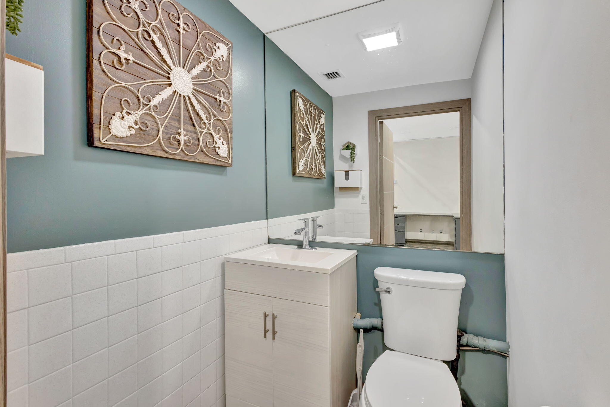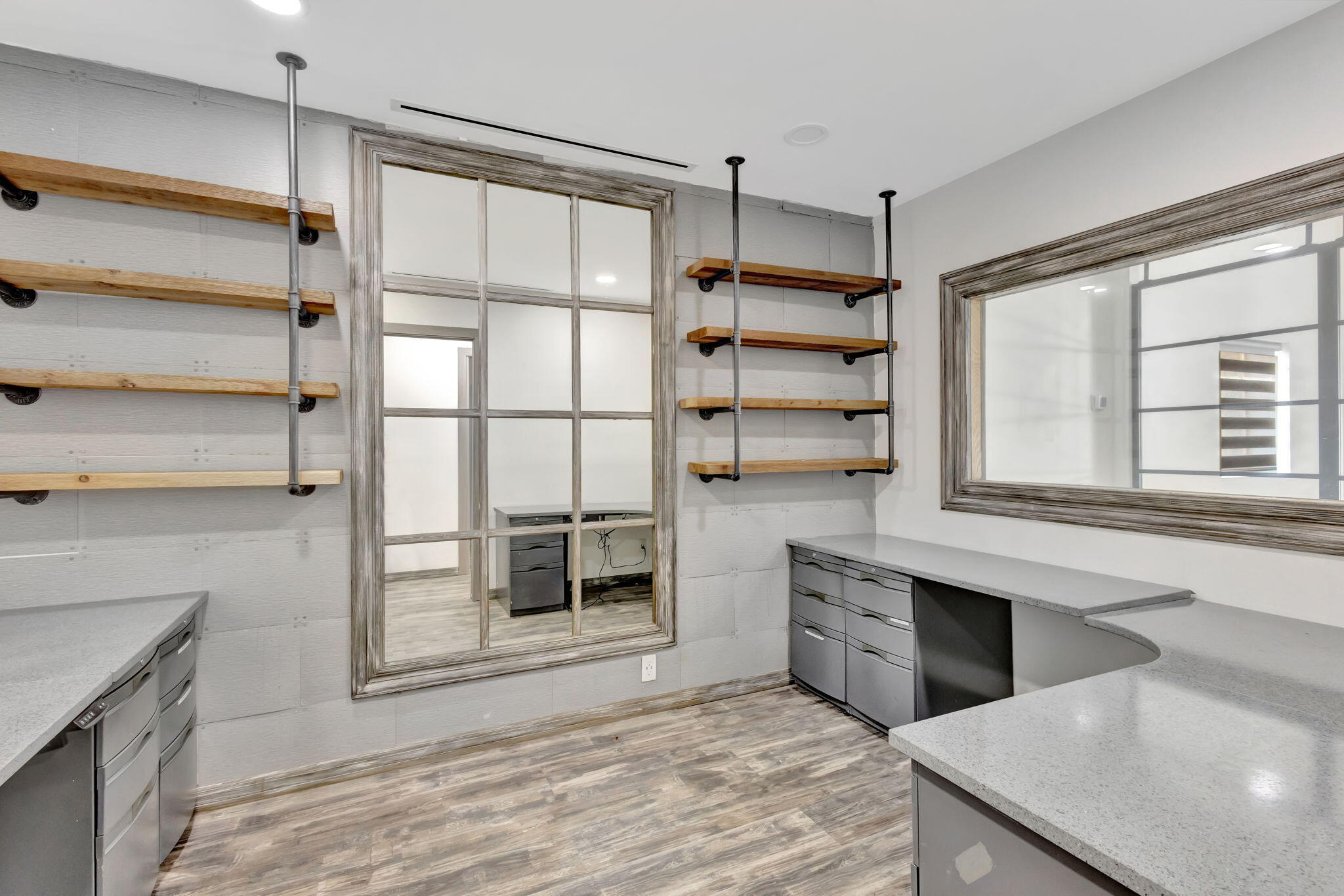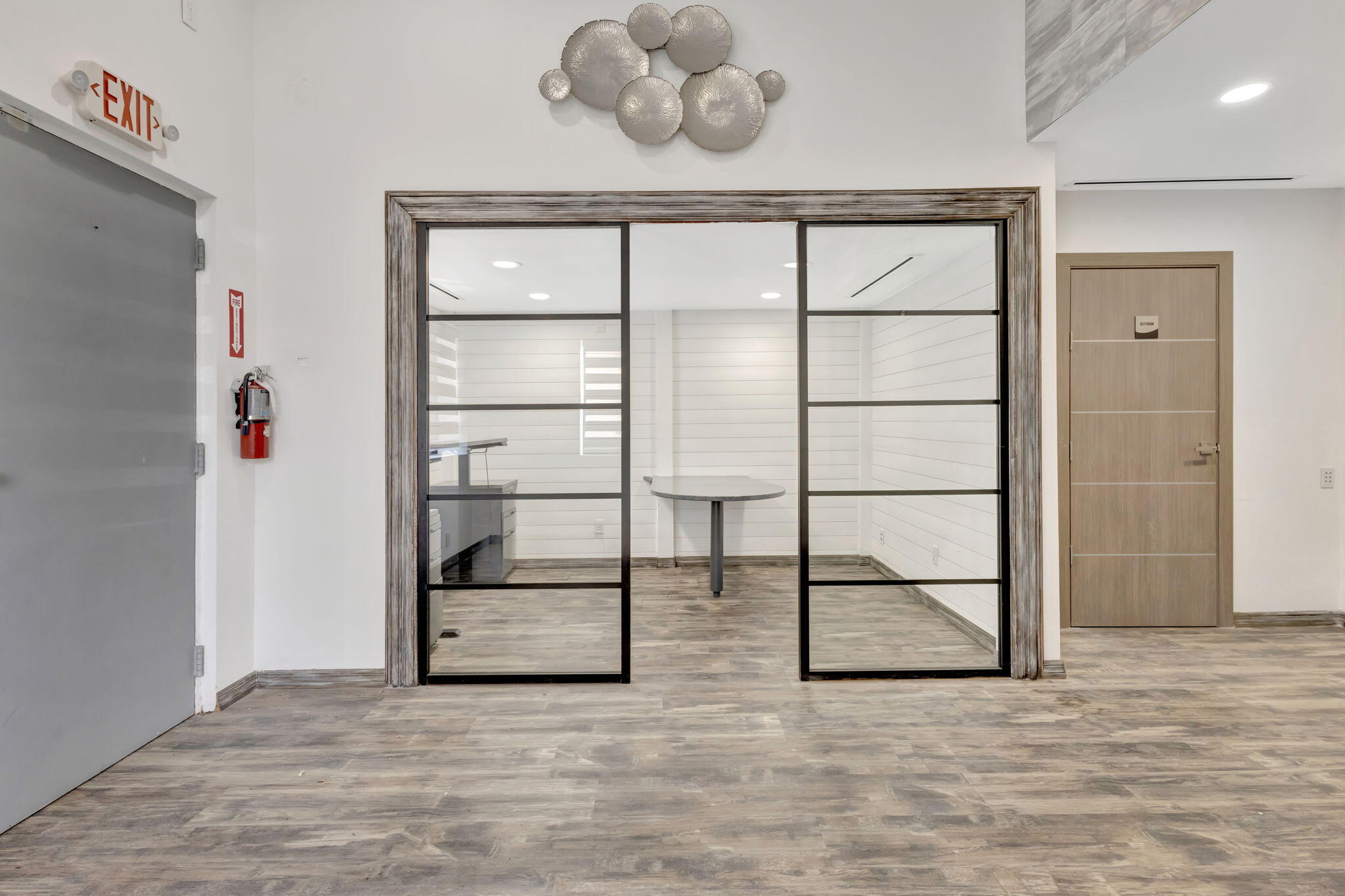 RARE OPPORTUNITY to own this 1190 SF, end-cap warehouse/office in central Jupiter. The space is equally divided into half office/half warehouse. The front of the unit has 3 light-filled renovated offices, a break-room with fridge, sink, and room for a table, and a renovated bathroom. The clean warehouse space has 16-foot ceilings, lofted storage space, 2 equipment storage cages, and a bay door that opens onto a double-wide driveway. 100% air-conditioned- 2 zones. Front and rear parking. MOVE-IN READY! Great location - one block in from Indiantown Rd and 5 minutes to 1-95.