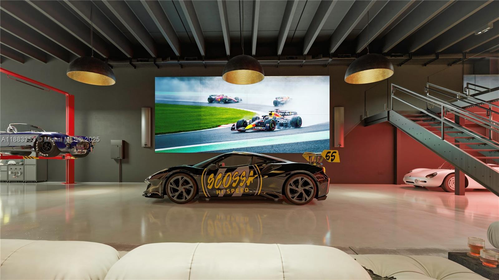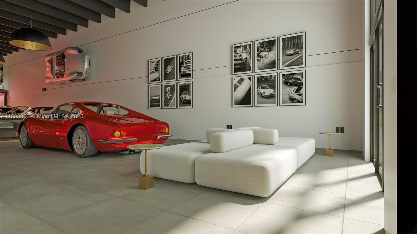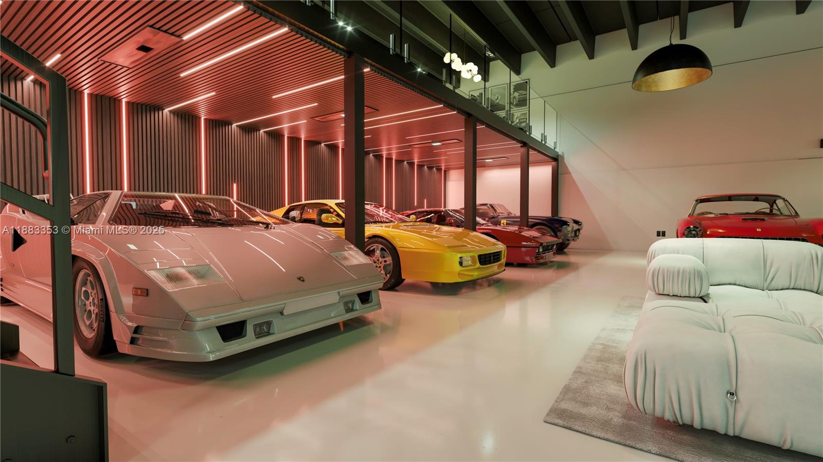 PERSONAL COLLECTION WAREHOUSE. Designed by Strang Architecture, the 2021 build-out offers luxury finishes throughout. 4300 sq. feet plus and additional 700 sq. feet divided into two mezzanines. The image gallery shows conceptual renderings showcasing how the current space can be easily modified with minor details into a gallery-style venue suitable for: Exotic cars, Rare art, Fine wine collections. The building’s solid concrete construction and extensive security features ensure the safety of valuable assets. It is also located away from the coastline, protecting contents from corrosive salt air.