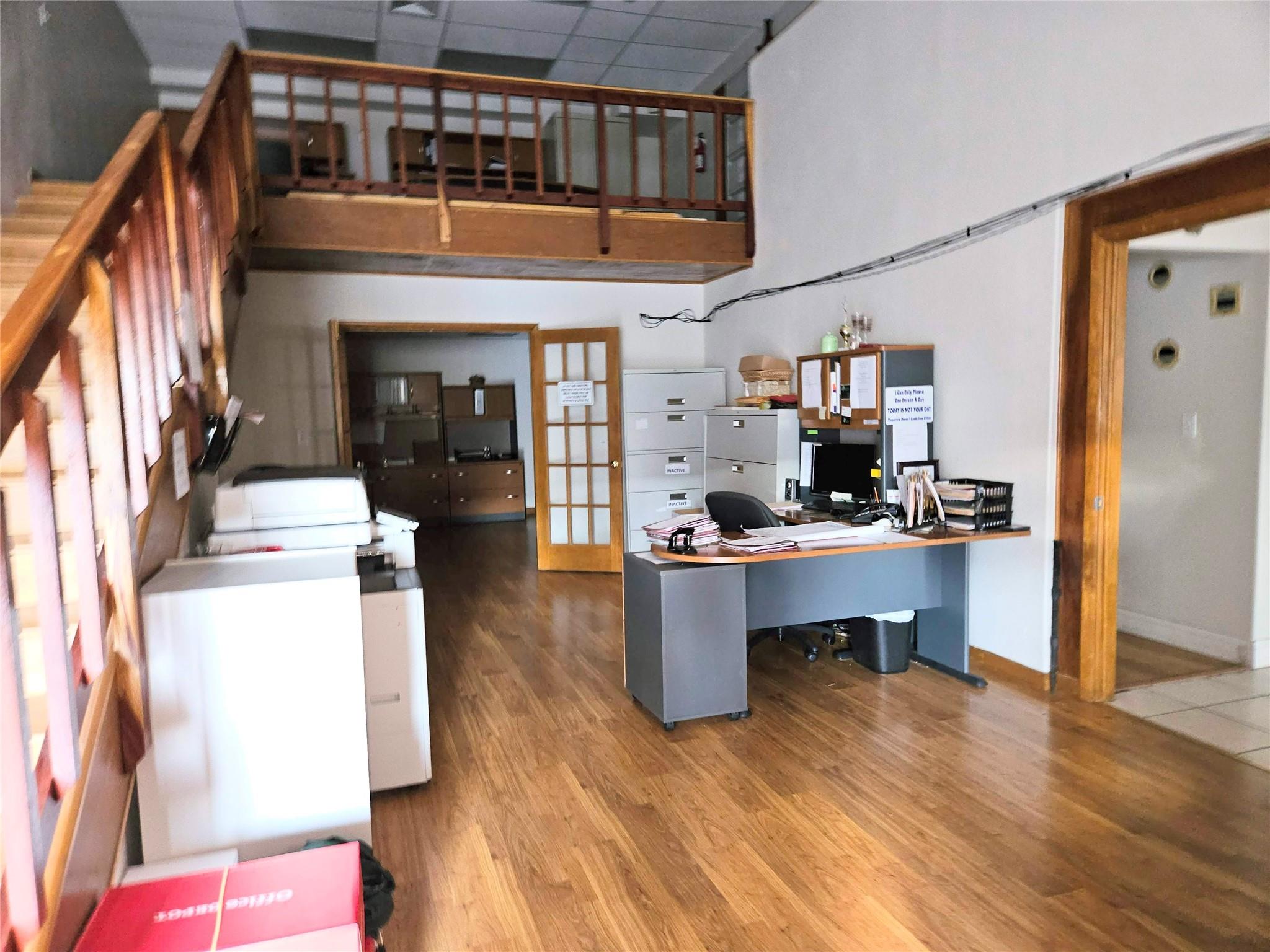 Discover the perfect blend of office and warehouse functionality in this 1,328 sq. ft. commercial industrial condo The ground level features a welcoming reception area, two private offices, a bathroom, kitchen, and a spacious open work area ideal for operations or light industrial use. Upstairs offers two additional offices plus an open office section perfect for extra desks, collaboration space, or storage. A convenient garage loading door enhances accessibility for deliveries and equipment. Buyer also has the option to purchase existing office furniture, making this a turnkey opportunity for a wide range of businesses.