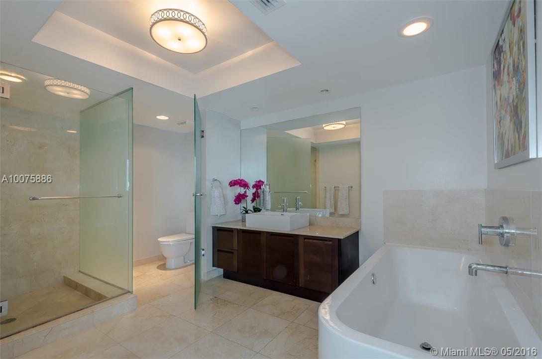 BEAUTIFUL UNIT PRICED TO SELL! PROFESSIONALLY DECOARATED 3 BED/2 BATH UNIT! ENJOY BAY VIEWS AND BEAUTIFUL SUNSETS! HIGH FLOOR VERY BRIGHT UNIT WITH FLOOR TO CEILING IMPACT WINDOWS, WHITE PORCELAIN FLOORS THROUGHOUT. BUILT-IN CLOSETS IN EACH BEDROOM. STAINLESS STEEL APPLIANCES, FULL SIZED W+D. ENJOY LIVING SURROUNDED BY LUXURY AMENITIES: POOL AREA, STATE OF THE ART EXERCISE ROOM. GREAT RESTAURANTS, SHOPS & BEACH WITHIN WALKING DISTANCE. UNIT COMES WITH A/C'd STORAGE UNIT LOCATED IN GARAGE.