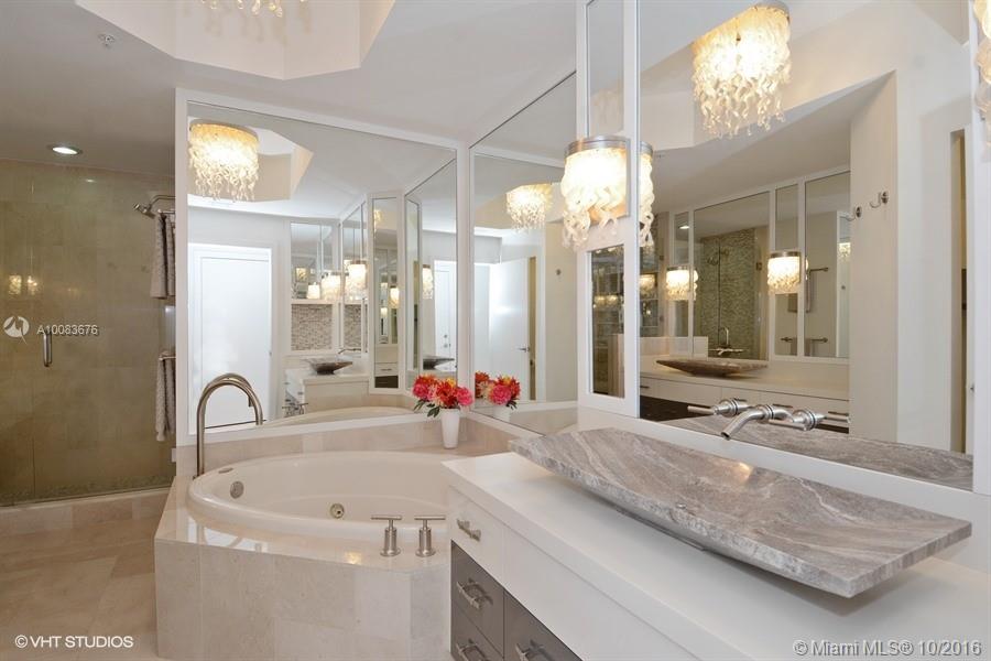 Absolutely Stunning Direct Ocean in exceptional low density complex. Floor plan has been architecturally customized;appointments are designer updated throughout.Ultra modern high end custom kitchen & baths. Miele appliances gorgeous bath & lighting fixtures.2nd & 3rd baths have stone & solid surface walls.Custom computer & TV desk area.Den w closet/wardrobe serves as 4th bedroom/media room.Intracoastal views from guest bedrooms.Great day/night views of park,ships and city. Easy Walk to Broadwalk & pier.