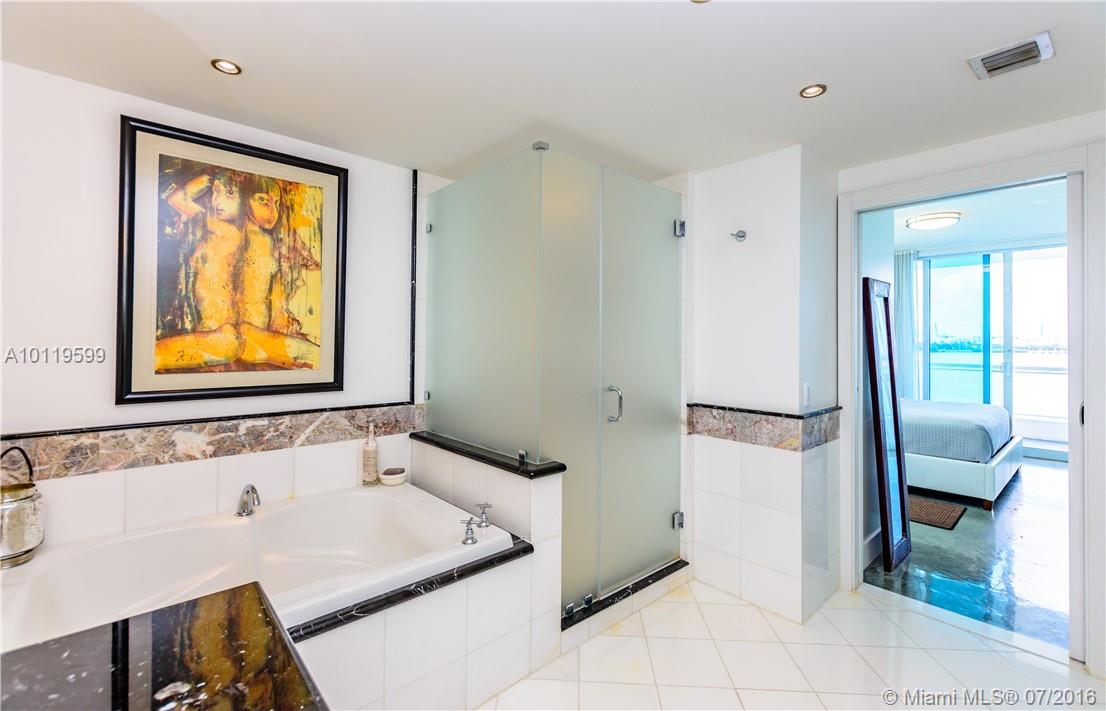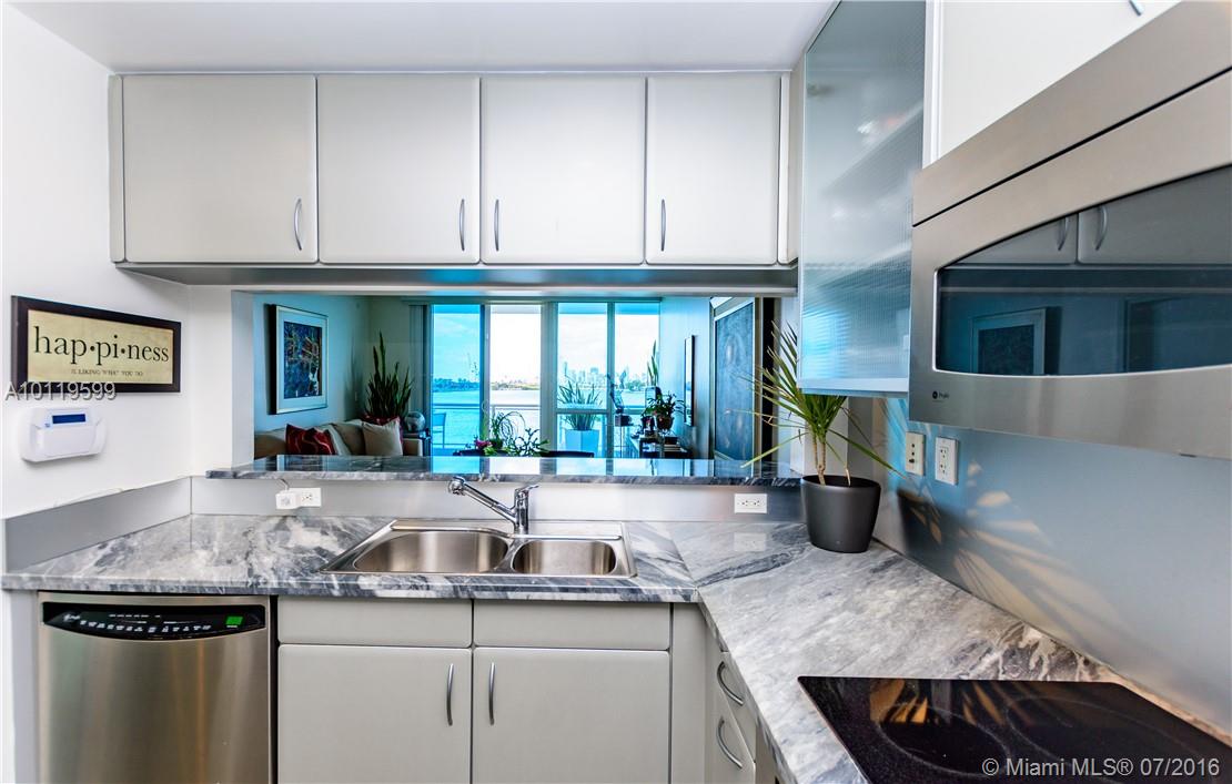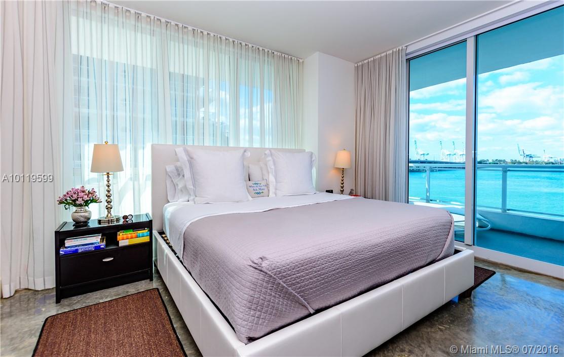 Enjoy mesmerizing views of Biscayne Bay & the Miami Skyline that showcases spectacular Sunsets from this exceptional Bentley Bay 1 br/1 bath bay front unit. Features include: 776 sq.ft. interior, corner unit, light and airy, European kitchen cabinetry, marble countertops, stainless steel backsplash, polished concrete flooring throughout, bathroom contains Italian marble, separate tub & shower, walk-in closet, 9 foot ceilings & 1 valet parking space. Easy to show. Live the Miami Beach lifestyle in this fantastic unit!