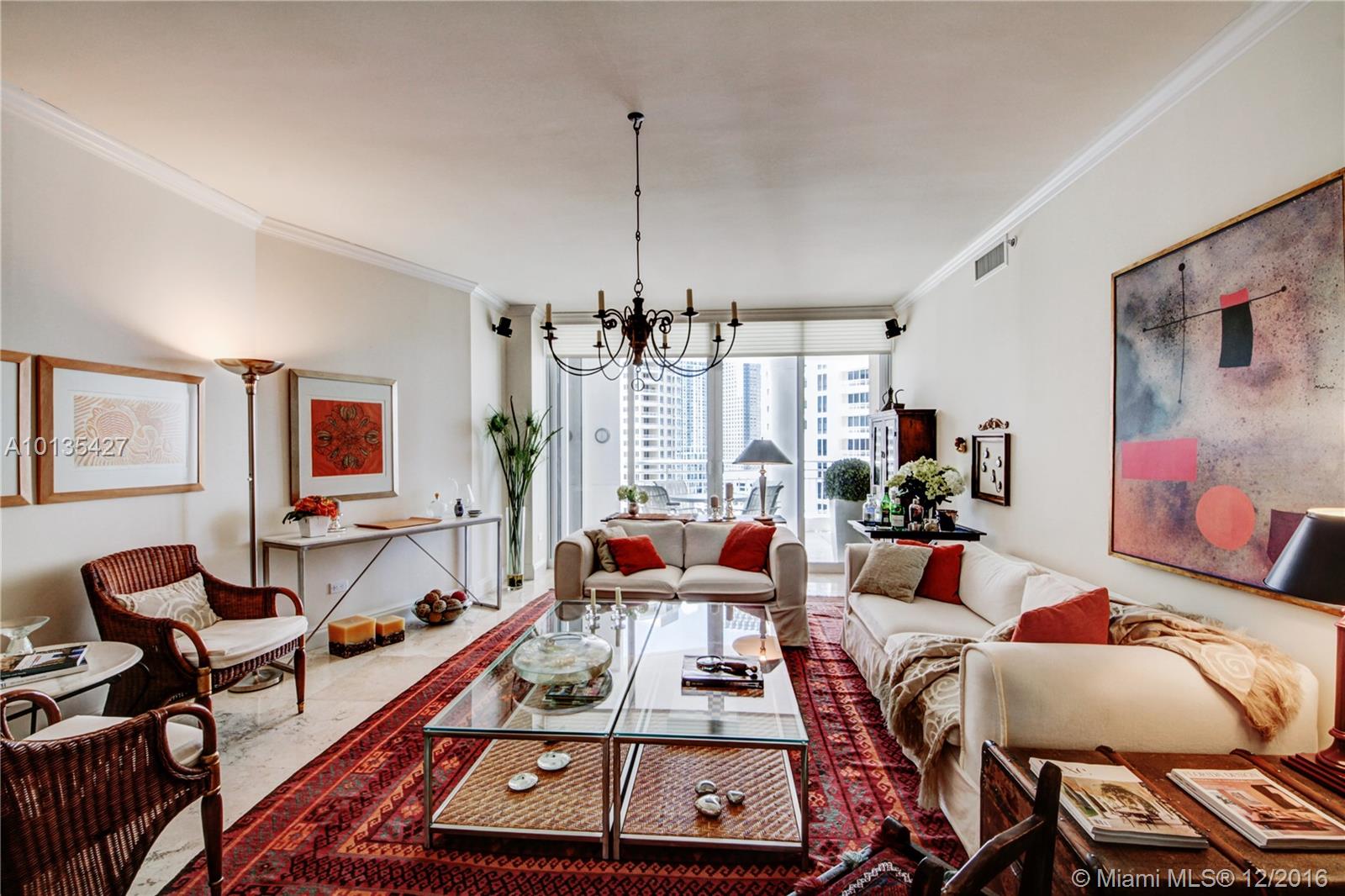 PRICED TO SELL - Beautifully kept 1540 sq/ft 2/2/1 unit w/ rare 2 ASSIGNED parking, 1 ASSINGED storage (10K value), a giant balcony w/ stunning bay/city views & access from both bedrooms. 24x24 Marble floors in living/dining/kitchen/balcony, an eat-in area within kitchen, huge walk-in California closets, an upgraded 1/2 bath w/ a second sink, a master bath w/ double vanity, Jacuzzi tub, and shower, a built-out office desk in the master. Two Tequesta is one of the most luxurious buildings on Brickell Key.