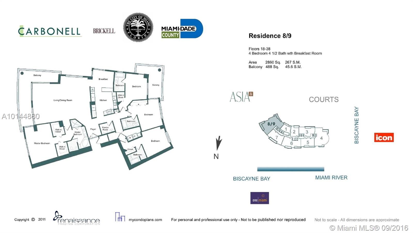 Carbonell Condo at Brickell Key Island, presents this sparkling 4 bedrooms/4.5 baths corner unit with fascinating Biscayne Bay, Miami River, Downtown Miami and Island Garden views, 2,860 SF of interior, 488 sf of balconies. Marble floors, chefs style kitchen, entry foyer, split plan, 3 parking spaces. Amenities include concierge, valet, racket, tennis, pool, play rooms. Luxurious, very spacious and private. Just perfect!