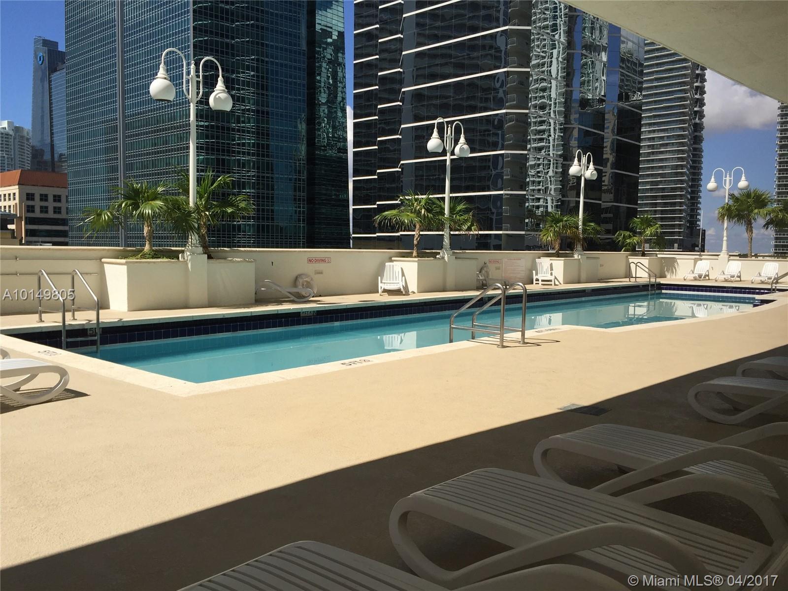 Enjoy amazing views of the bay, Virginia Key, the ocean, and the city while relaxing on your extra large balcony from this 1/1 condo. Large living and dining area with wood flooring. Spacious bedroom with entrance to balcony and carpeting. One gigantic walk in closet coupled with a second large closet takes care of all your storage needs. Great sized bathroom with washer/dryer combo. Kitchen with granite countertops and European style cabinetry. Condo has 2 lap pools, jacuzzi, 3 room gym, security