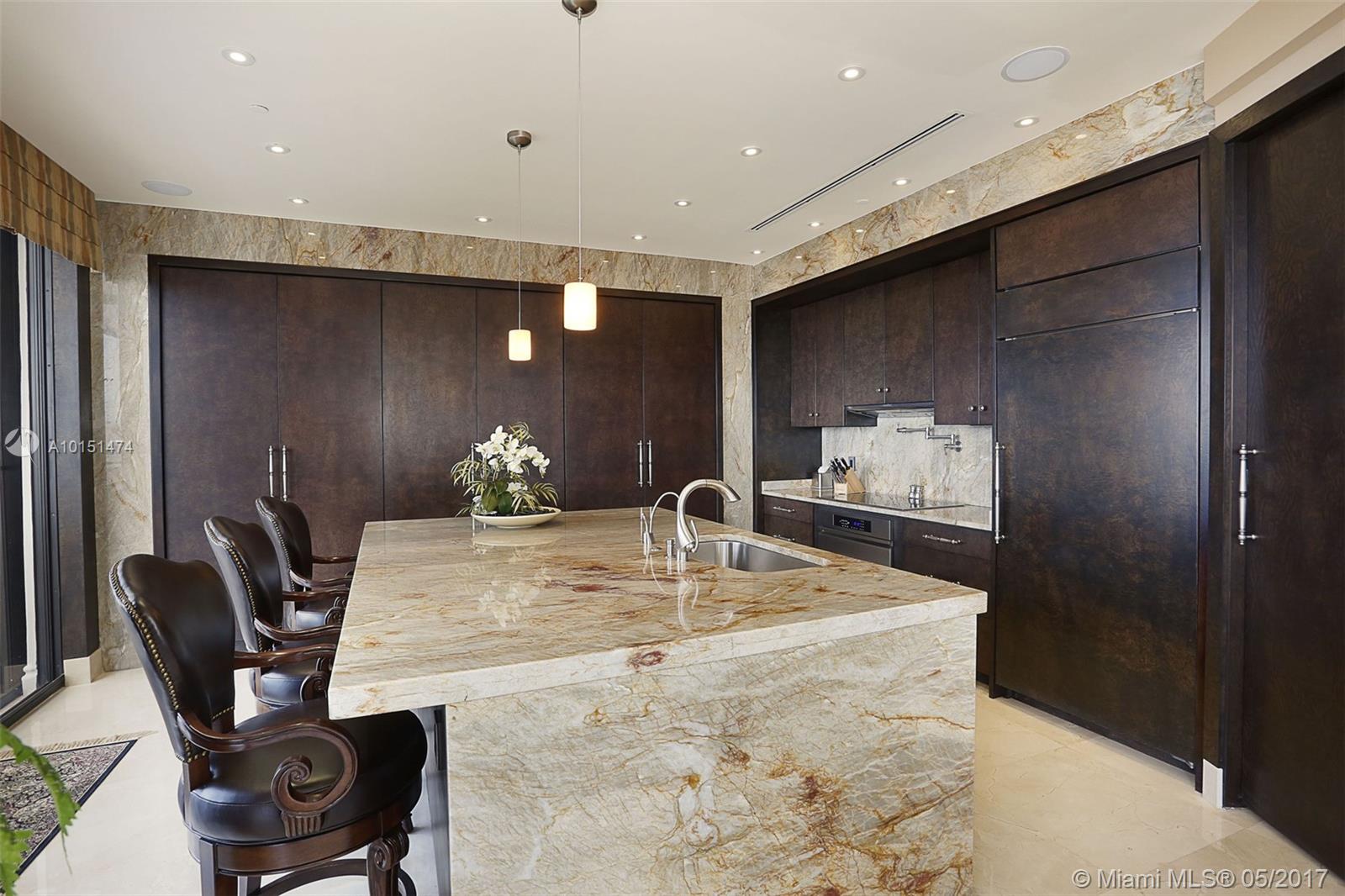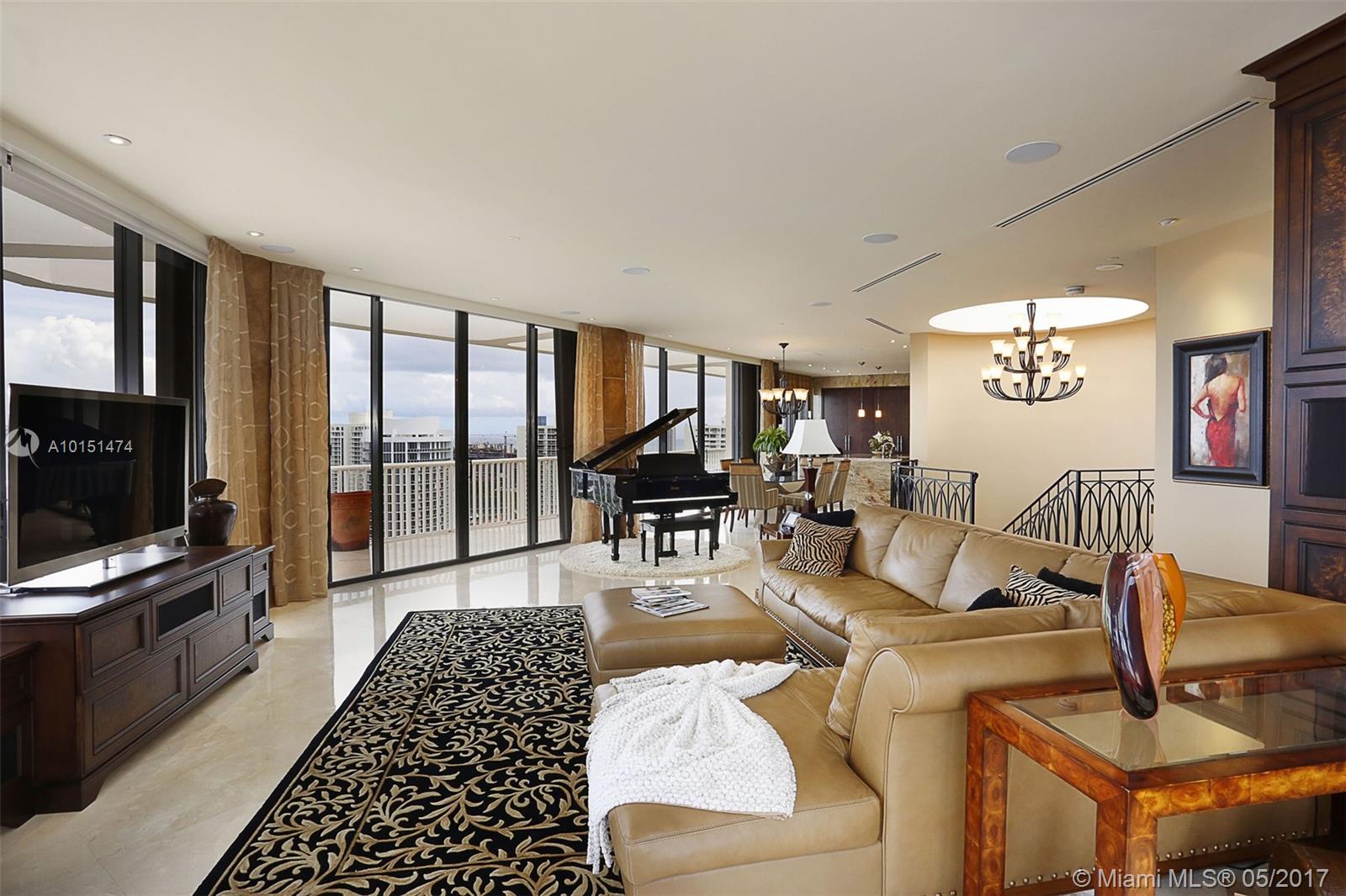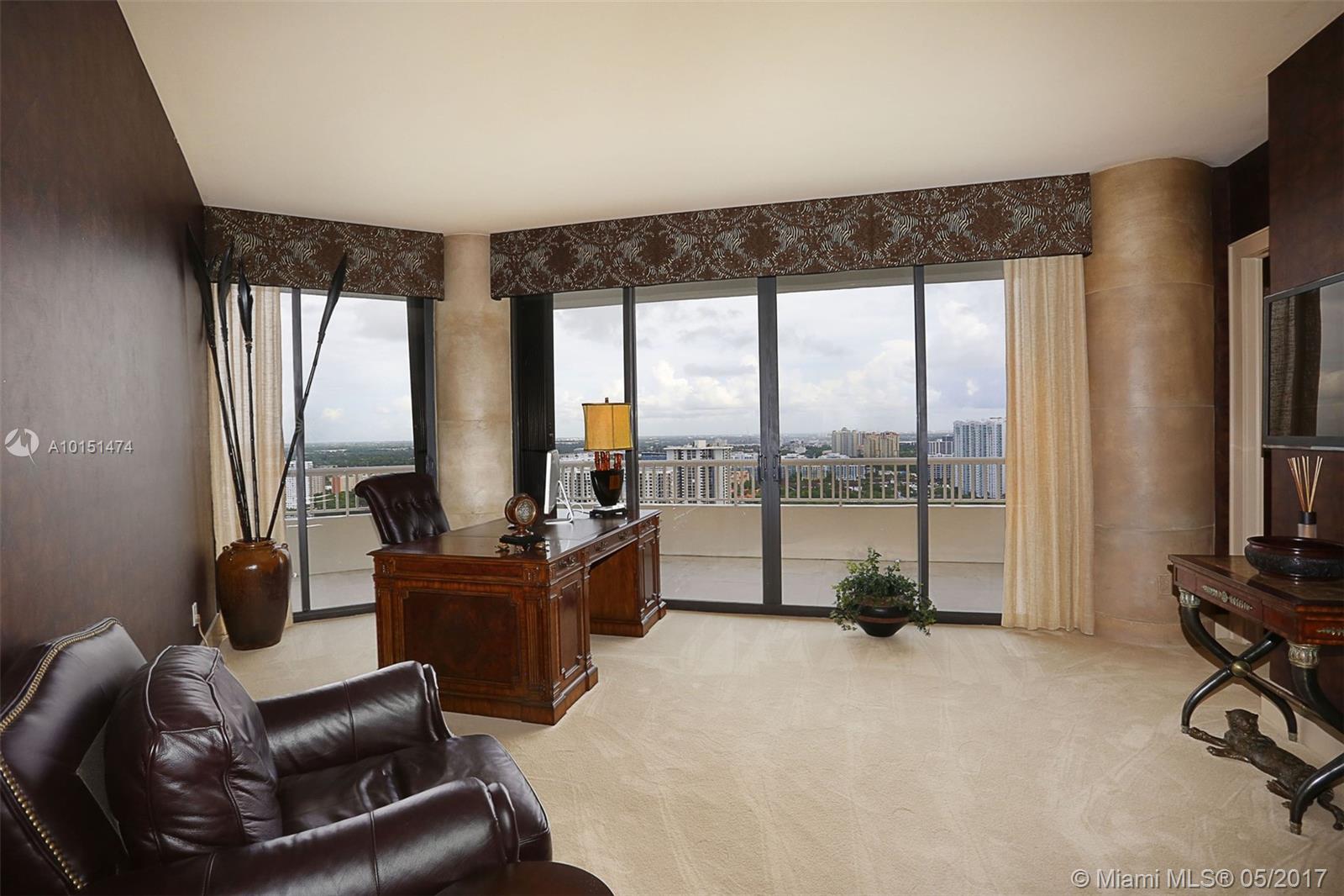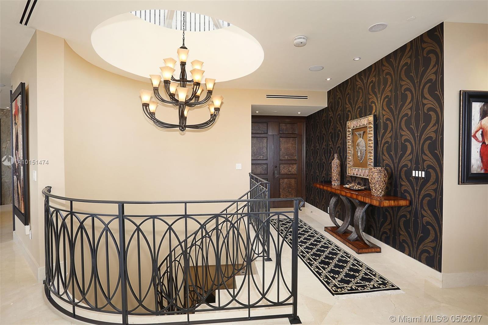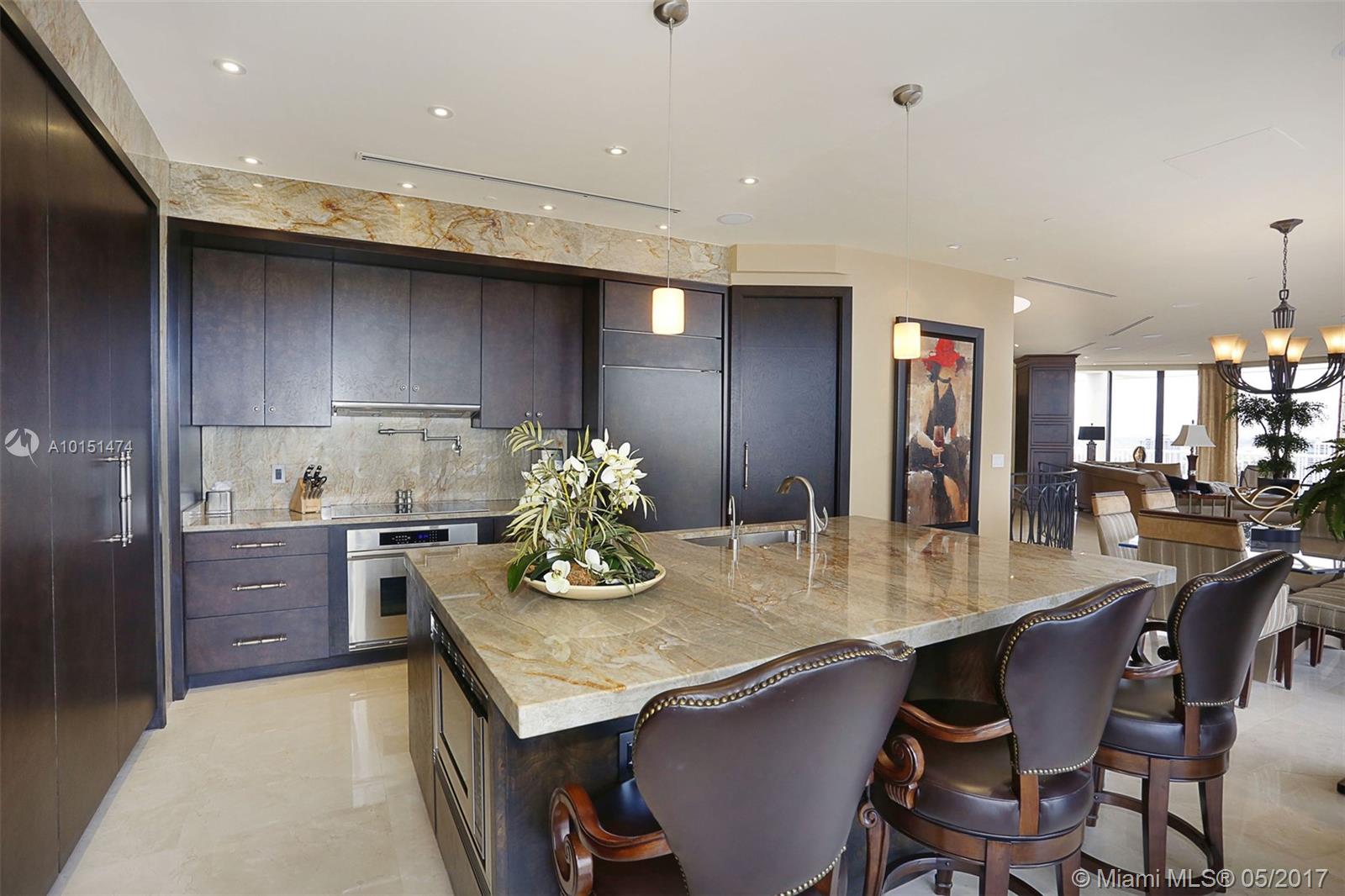 Luxurious 2 story 3 bed/3.5 bath custom Penthouse with stunning bay and ocean views, with ample balcony and private spa, located on prestigious Williams Island. The sleek kitchen boasts stunning countertops and entire island made of impressive onyx and Subzero fridge. The majestic staircase is comprised of Italian Marble and custom wrought iron railings. Master bathroom features marble and Sherle Wagner faucets. Control4 system conveniently controls surround sound and blinds throughout. Available turnkey.