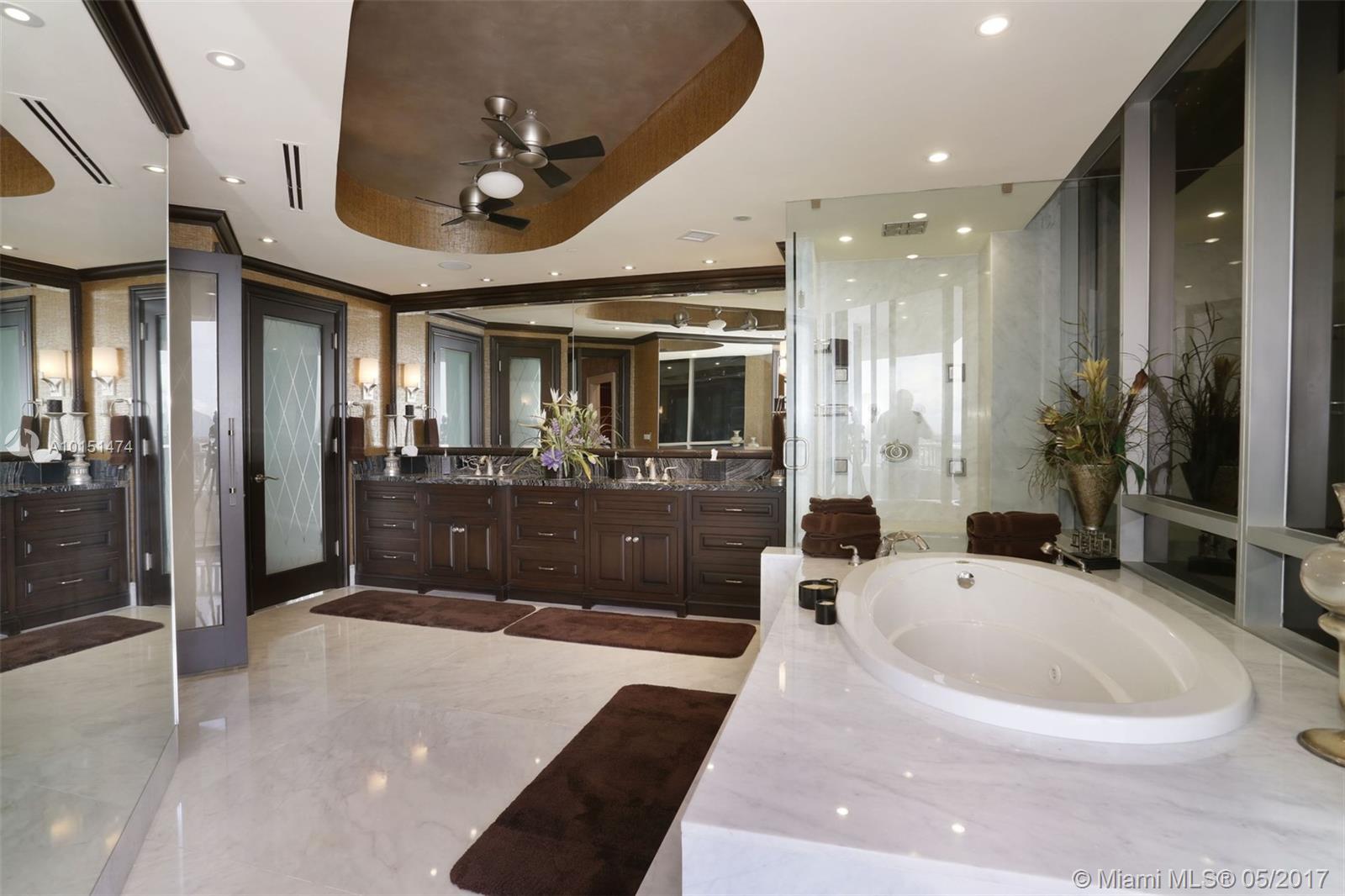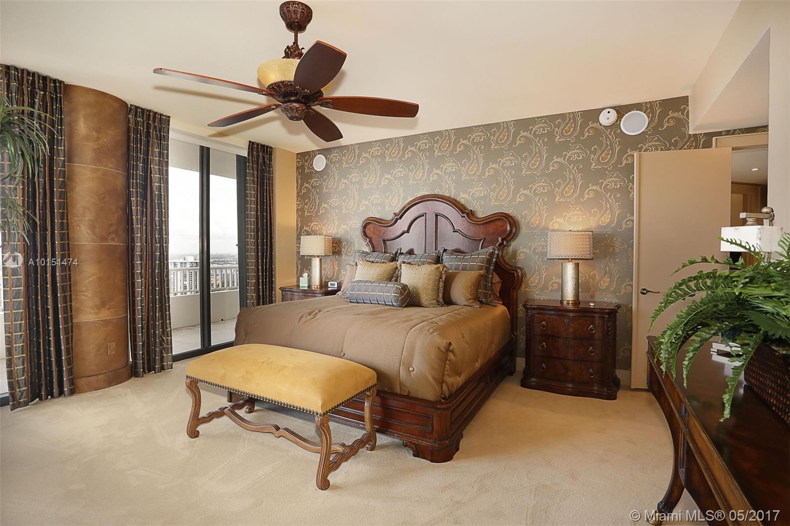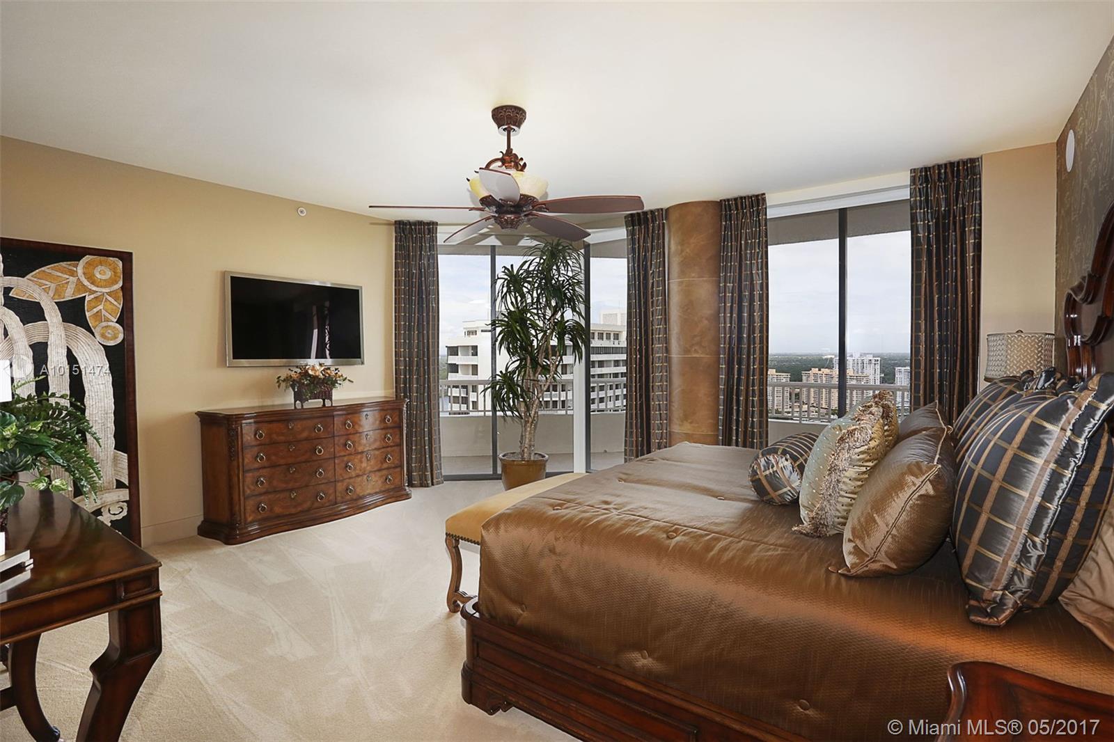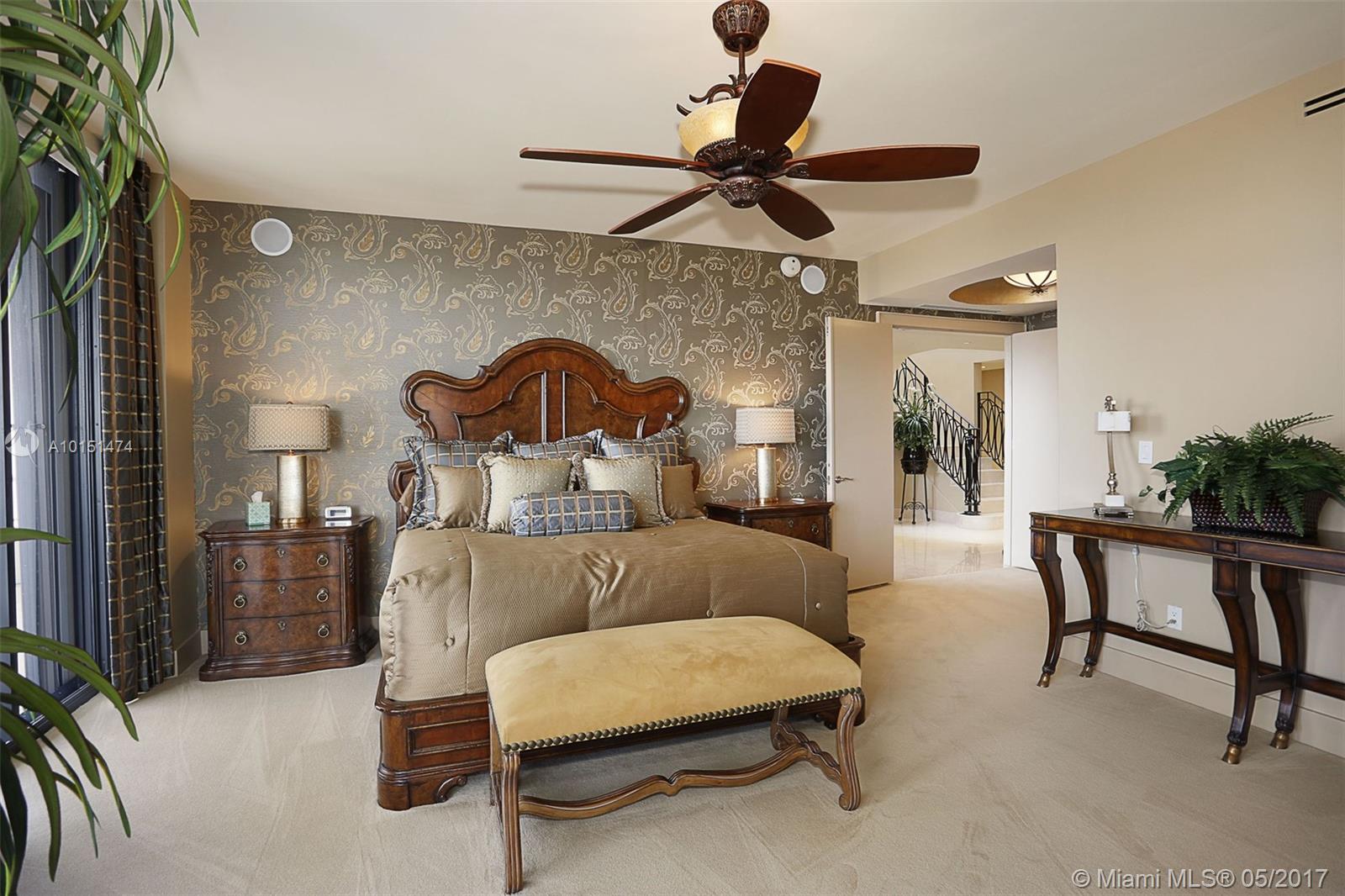 Luxurious 2 story 3 bed/3.5 bath custom Penthouse with stunning bay and ocean views, with ample balcony and private spa, located on prestigious Williams Island. The sleek kitchen boasts stunning countertops and entire island made of impressive onyx and Subzero fridge. The majestic staircase is comprised of Italian Marble and custom wrought iron railings. Master bathroom features marble and Sherle Wagner faucets. Control4 system conveniently controls surround sound and blinds throughout. Available turnkey.