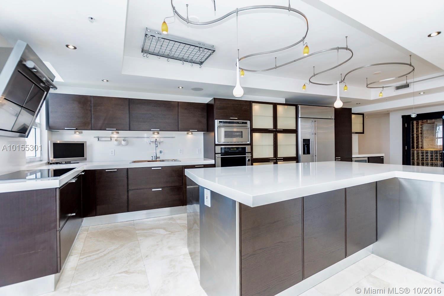 Large Combo Unit. Located at the guarded island of Brickell Key, ideal for families. Spectacular views of Biscayne Bay & Ocean. 2 oversized terraces make this customized residence the most unique unit in the bldng. Marble &wood flooring throughout. Extra Family room or Office. Open gourmet kitchen with Italian cabinetry/Quartz counter tops. A 200(+) bottles walk in wine cellar. Surround system in every room. 4 assigned parking spaces and storage. 24 hr security. Spa, Tennis, basket courts in the building.