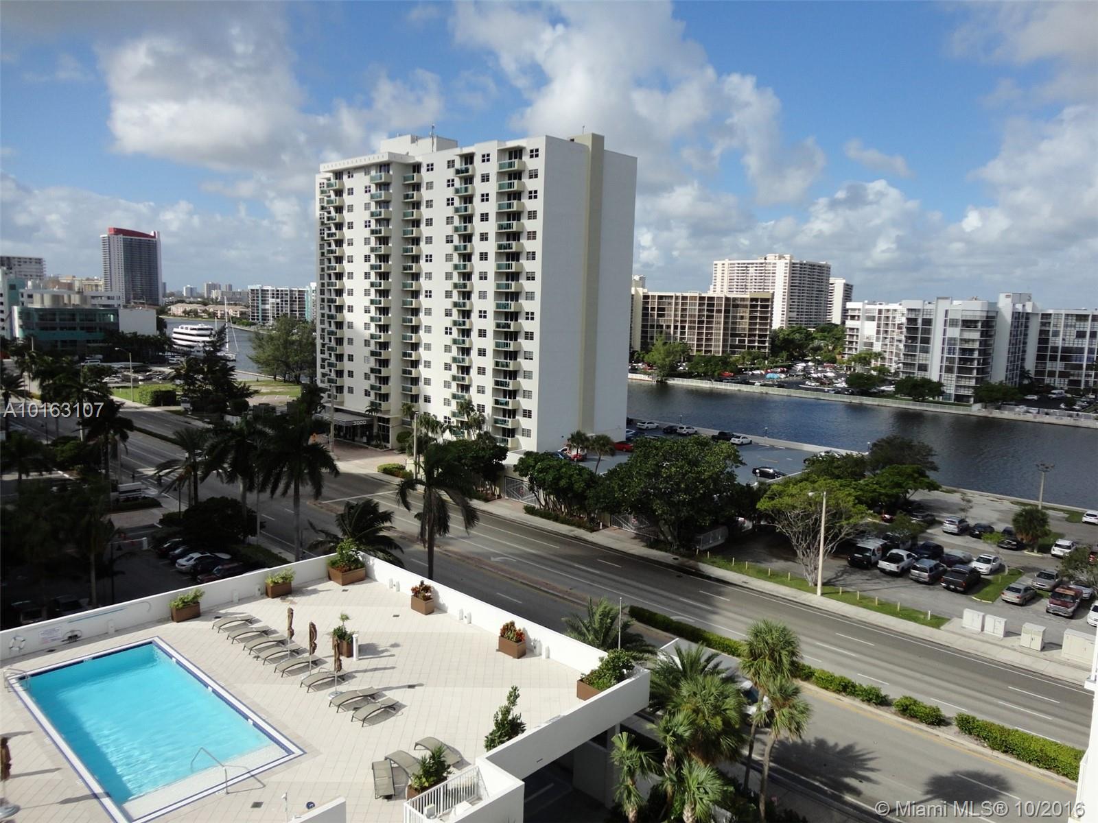 Aquarius Hollywood Beach. Oceanfront condominium. 2/2, split floor plan, tile. South exposure. View of the Atlantic Ocean, canal, pool area and sky view. Large eat-in kitchen. A lot of closets. Washer/dryer are in the unit in laundry room. Aquarius condominium offers concierge, valet parking, two pools -East pool on the ocean and West pool, restaurant, sauna, gym, nail salon. Renovated lobby. Don't miss this opportunity to own your own piece of paradise on the sand. Pleasure to show! Offers are welcome.