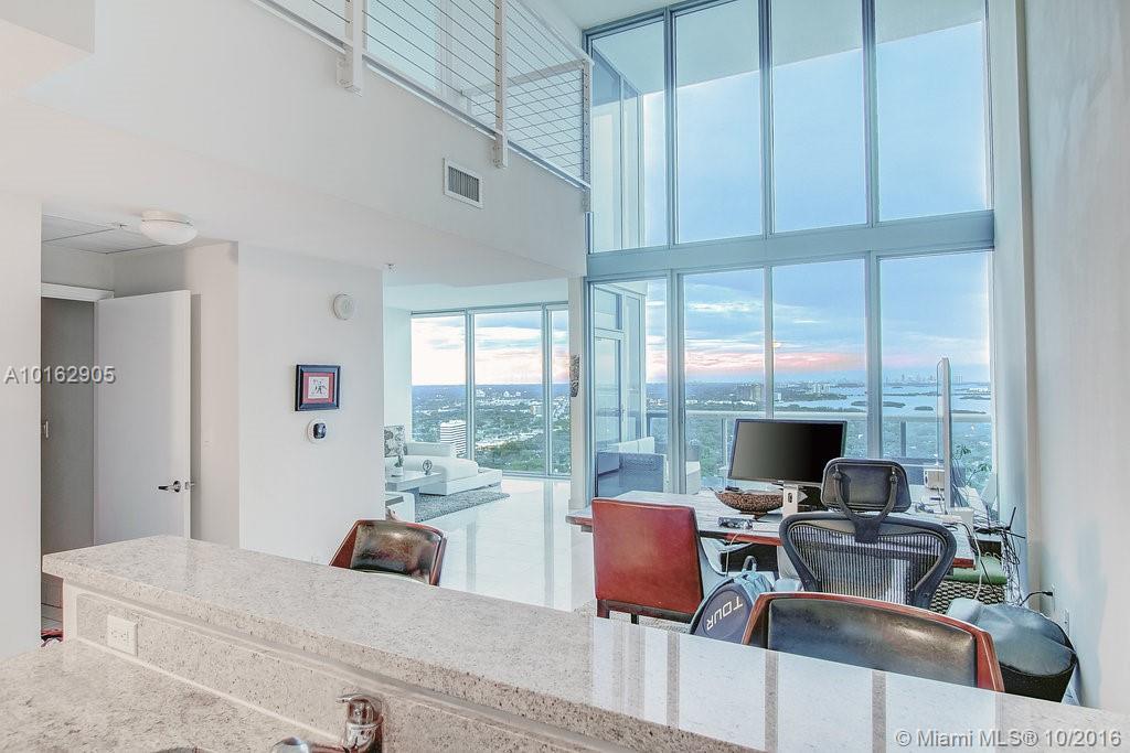 Penthouse Bachelor Pad w/Wide Open views of Biscayne Bay, Ocean & City. This fully furnished 34th floor penthouse loft is bright and spacious with two story floor-to-ceiling impact windows, modern finishes including stainless steel appliances, and a private balcony. Building has top of the line amenities featuring 2 pools, sauna, fitness center, Jacuzzi, BBQ area, dog park, convenient store, party room, movie theater, valet, and 24hr. valet & security. Unit comes with 2 parking spaces & storage.