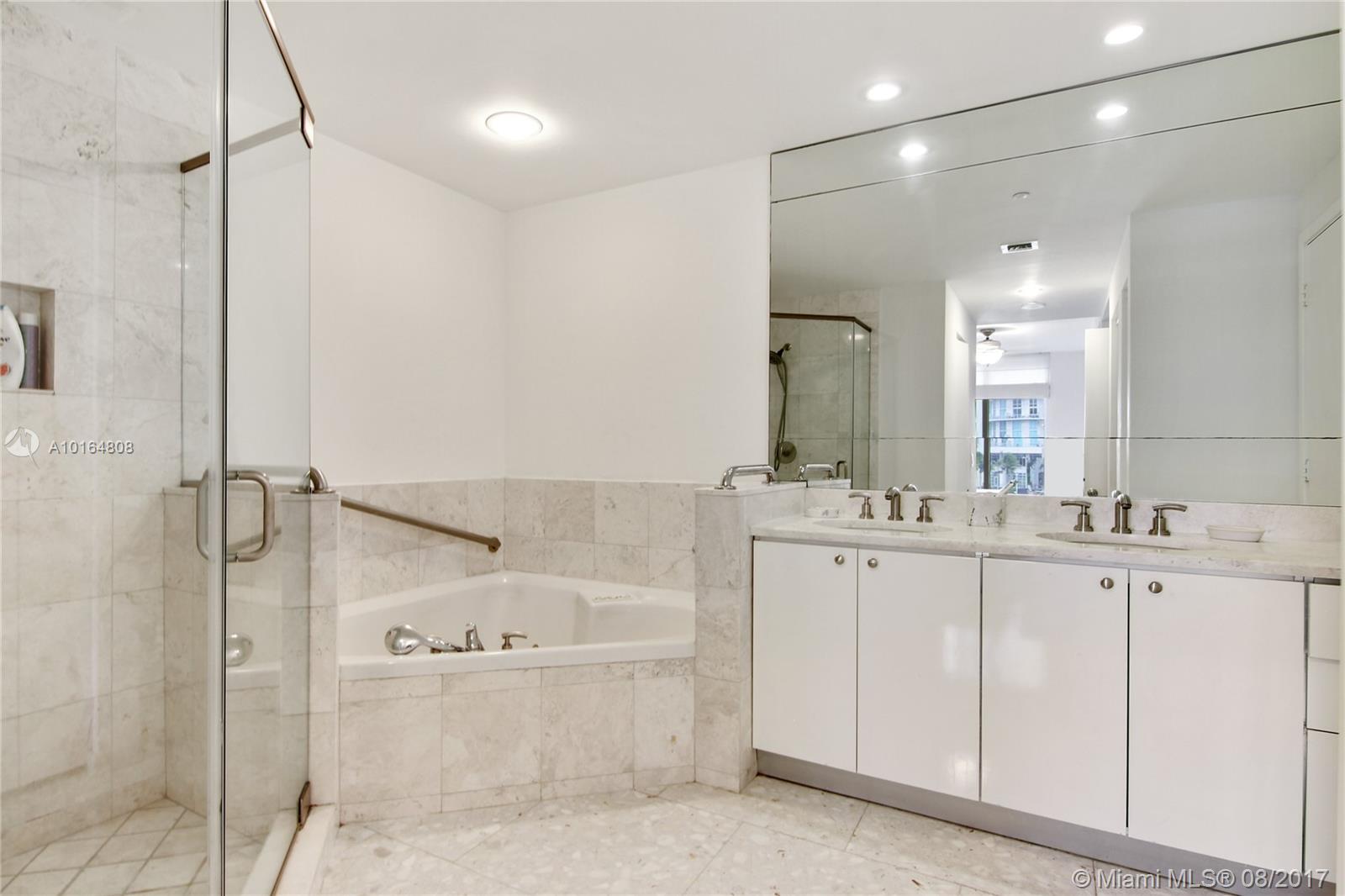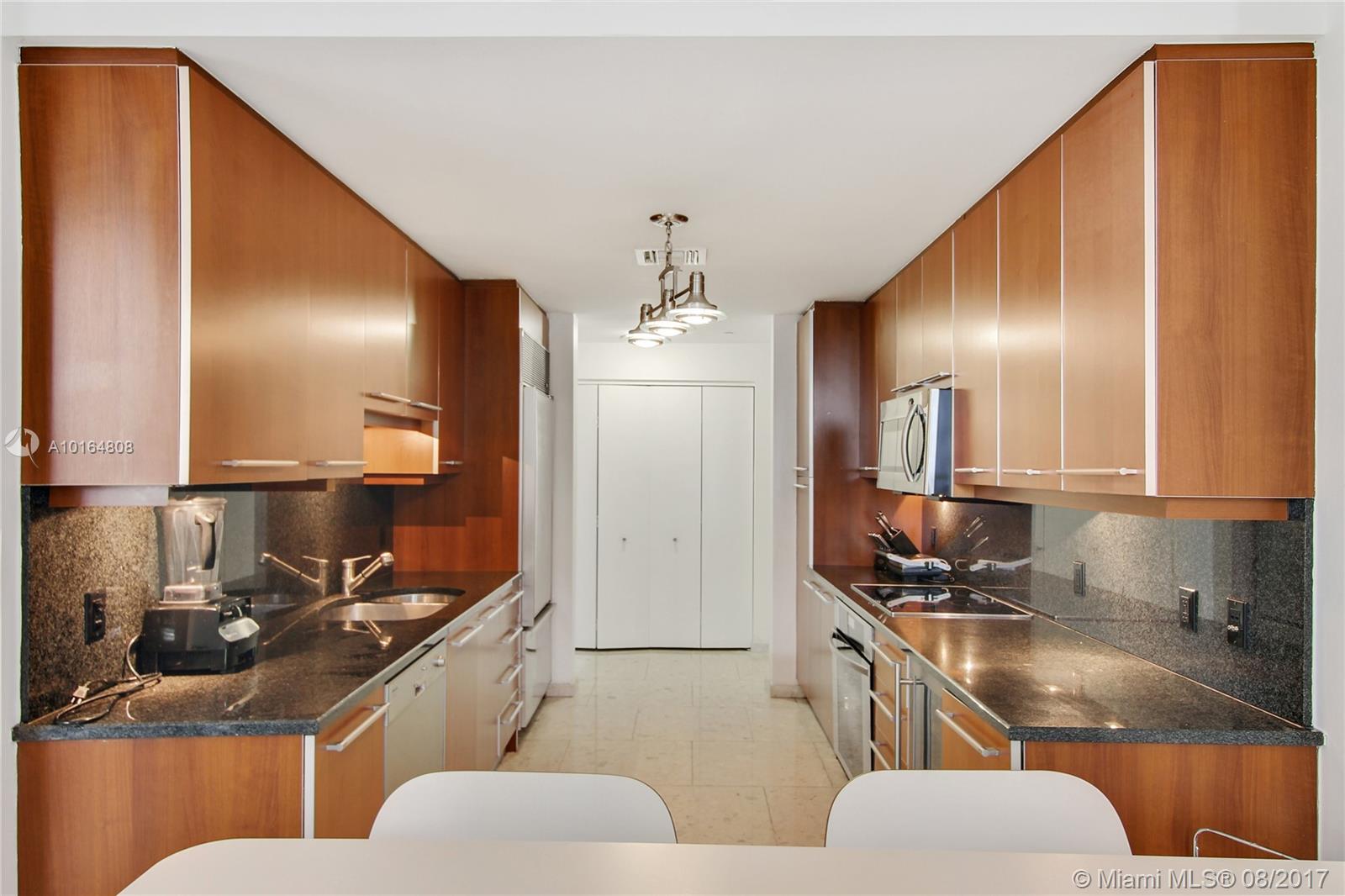 The Carbonell at Brickell Key. Spectacular unit on the third floor with ocean, river and skyline views from every room! Imagine having the convenience of a house in this condo. Split floor plan, 2 bedrooms, 2.5 baths. Marble floors throughout. Gourmet kitchen with breakfast area. Walk-in closets in every room. Great balcony to enjoy sunrise and sunset. Unit includes 2 parking spaces and 1 storage unit on same level. Building has state of the art gym, beautiful pool and all amenities.