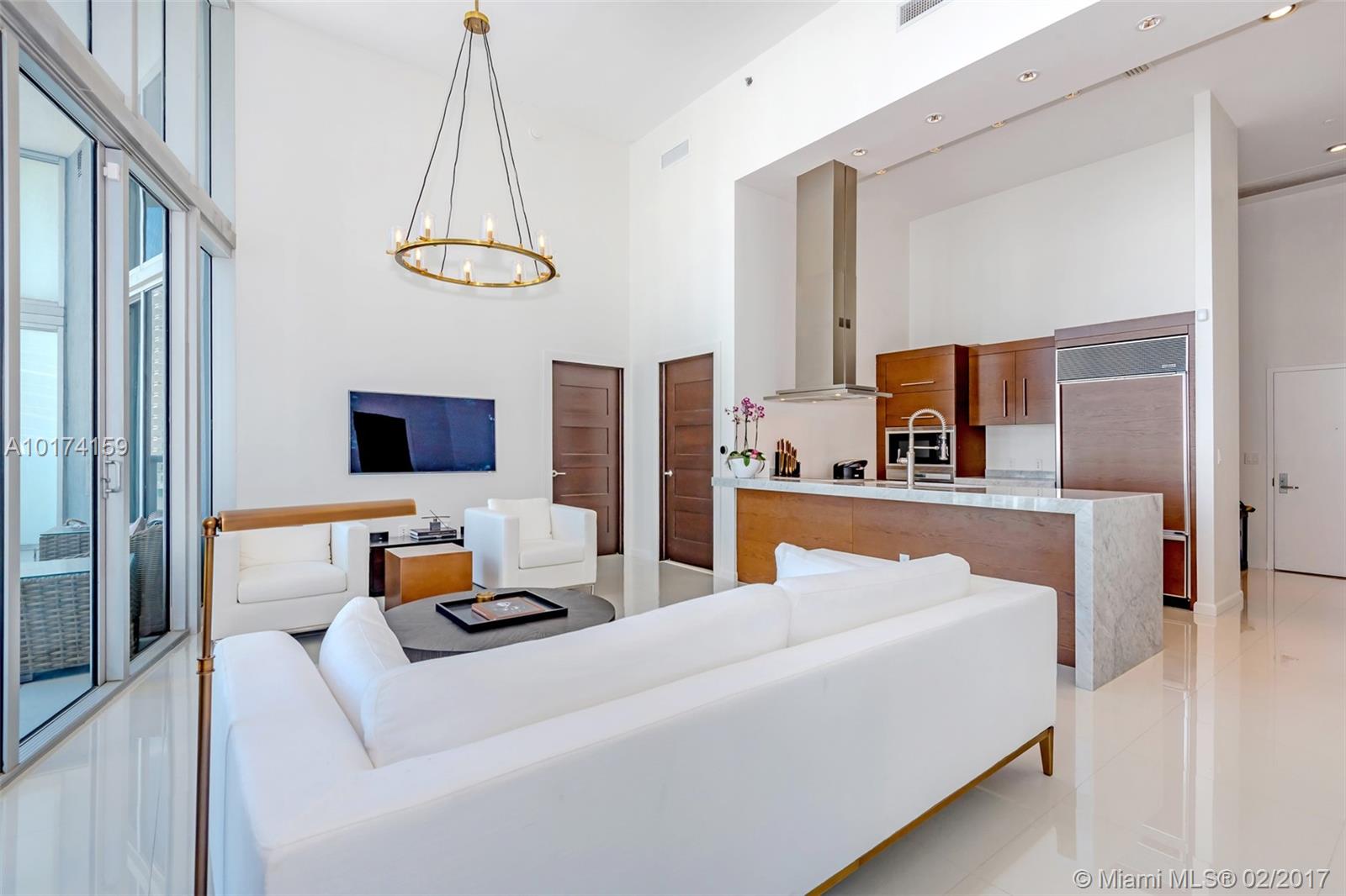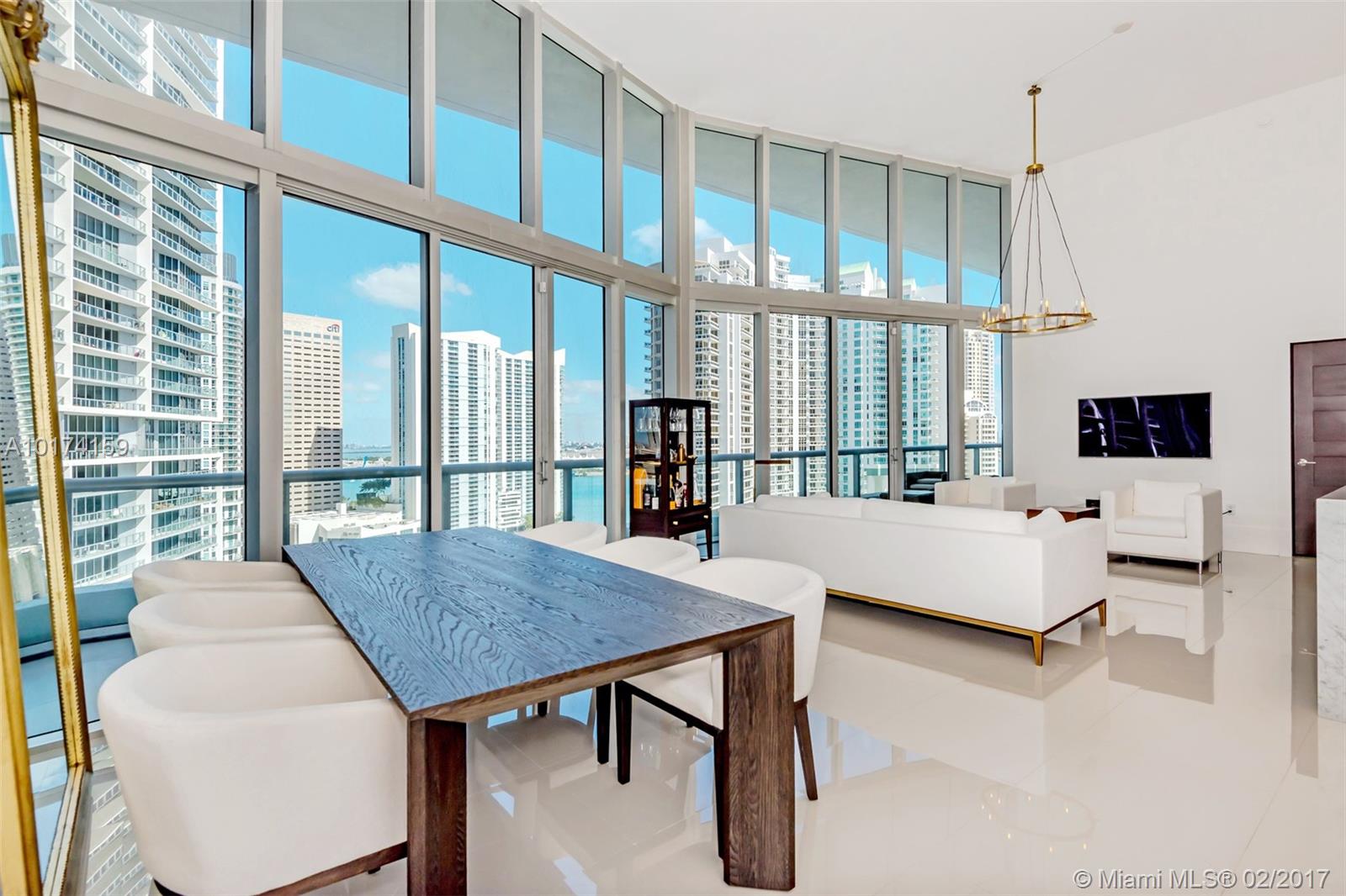 Spectacular 2/2 split unit w/breathtaking ocean, river & city views with 16ft high ceiling windows (Only floors 14, 15, 22, and 41 have high ceilings windows). Modern and sleek 24x24 white porcelain floors. Luxurious marble baths w/ over-sized Jacuzzi tub. Walk-in closets custom lined with wood. Extended travertine counter top, LED lighting. Top of the line appliances. Resort style living with state of the art, gym, spa. Five star restaurant Cipriani. **Special Assessment paid in full by owner*