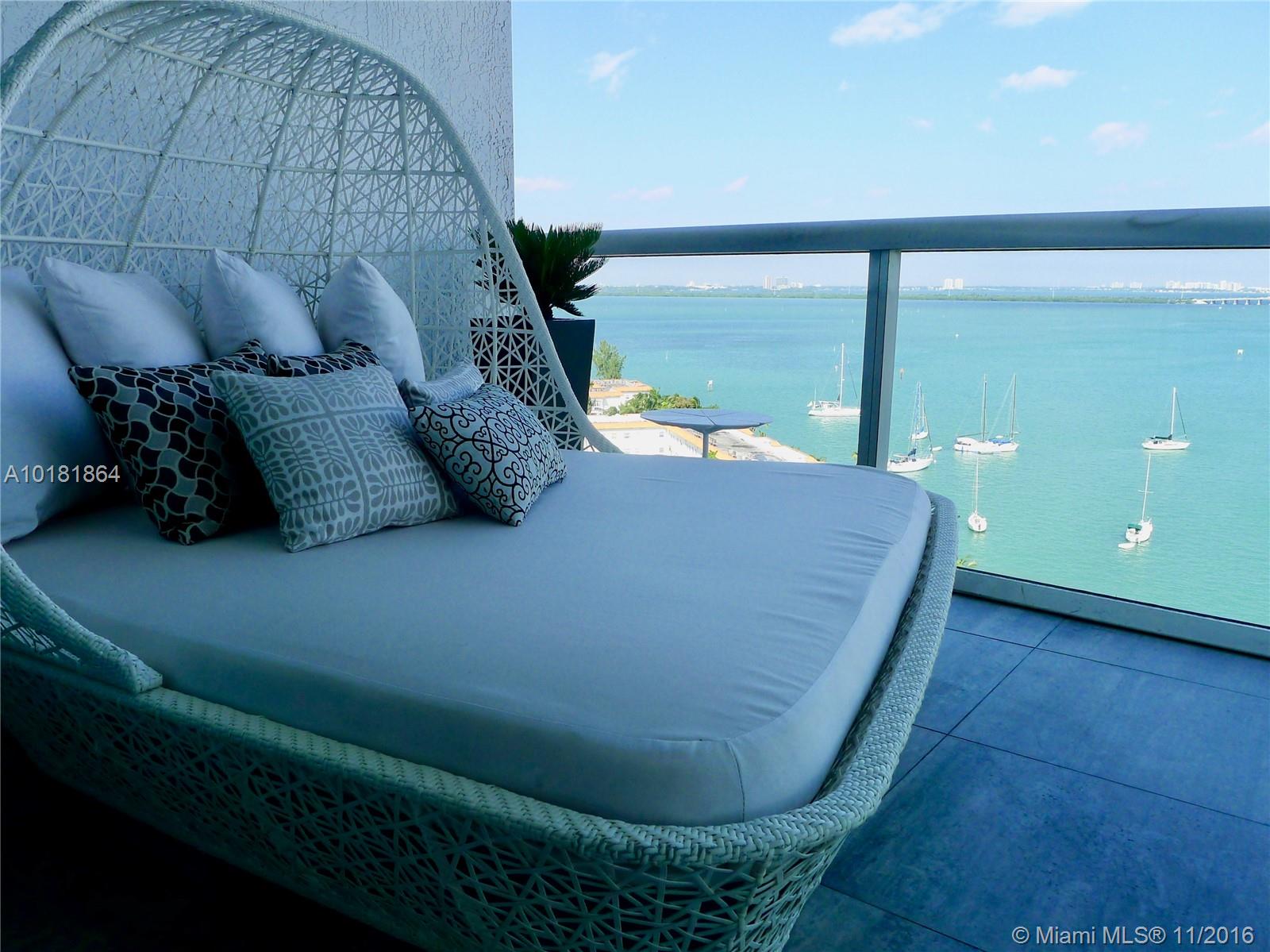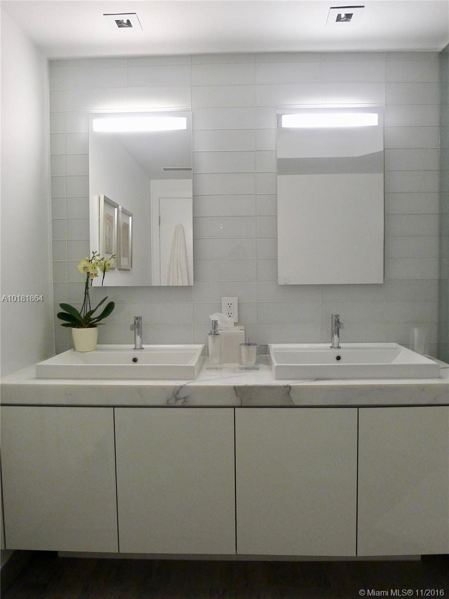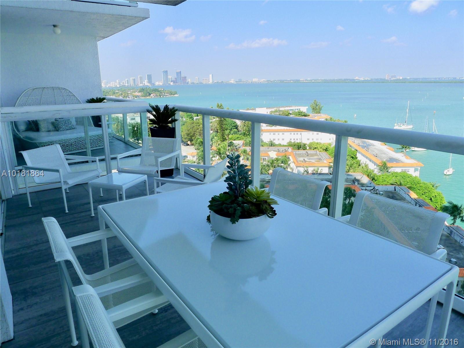 Designer 2/2 in boutique luxury building features Italian porcelain floors, renovated bathrooms, steam shower in master, new kitchen cabinets w/marble backsplash & Corian counter tops, glass french doors w/designer door handles & door stops, dimmer switches on all light fixtures, wired throughout with speakers for AV system, motorized blackout shade in mstr bdrm, custom closets. Stunning views of bay and city. Walking distance to shops and restaurants at Sunset Harbour, Lincoln Rd & beach. Owner agent.