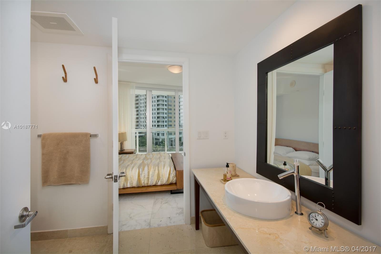 Luxurious condo in a rarely available line (only 42 units in Icon Tower 2 by Phillippe Starck! Beautiful 2 bed/2 bath featuring split floor plan, 24x24 marble floors, ensuite bathrooms, full kitchen, walk-in closets, electric blackout curtains, etc. With its superb view of the bay and Brickell Key from every room, this unit really stands apart. 1 garage space on the same floor, right outside your entrance! High end furniture can be bought as well, an absolute turn key deal!