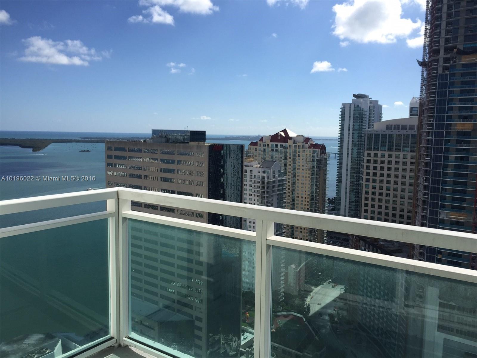 Beautiful Bay and city views from this high floor unit. Large open split floor plan with lots of light and large his and hers closets in the master. Luxury building in the heart of Brickell with very low condo maintenance fees. Close proximity to restaurants, night life, and upscale shopping at the new Brickell City Center.