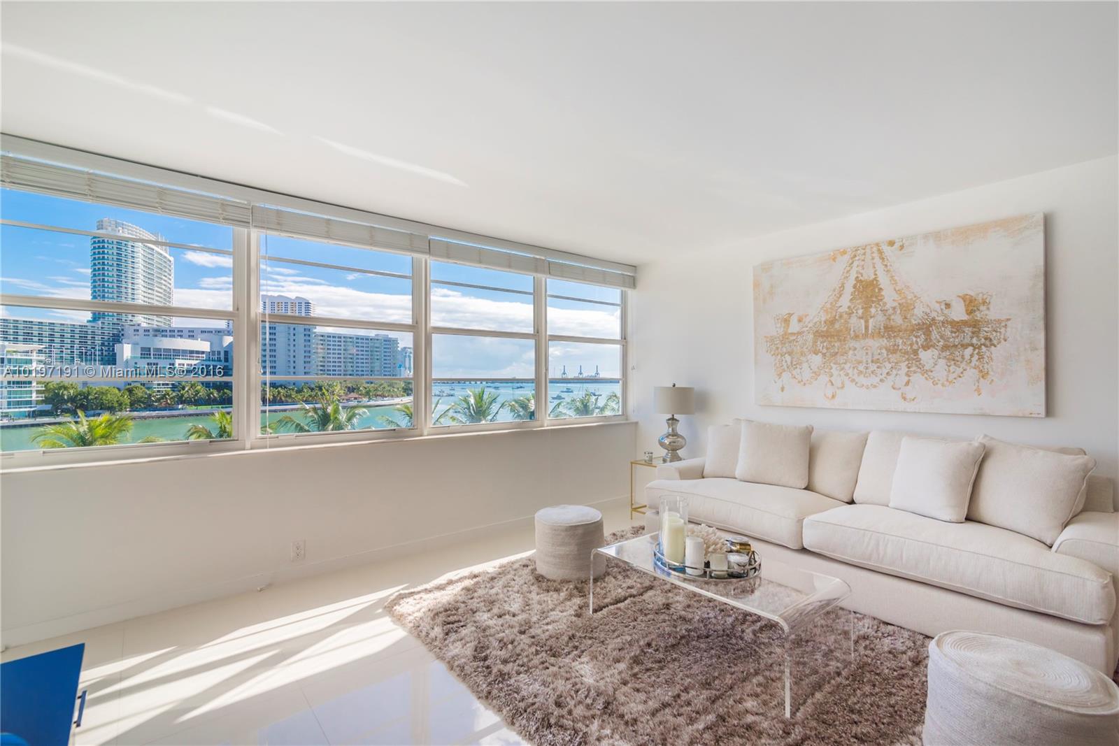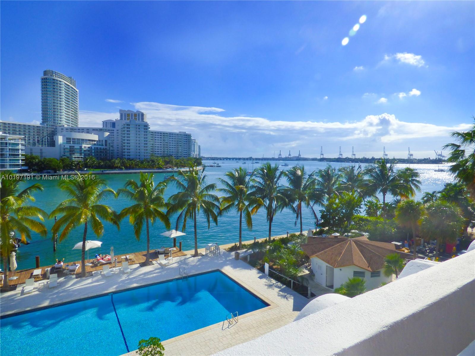 Fabulous Direct Bay Views from wonderfully renovated spacious, 900 sq ft, South facing 1 BD/1.5 BA on Belle Isle. Features: renovated kitchen, white porcelain flooring, beautiful marble/tile baths, large closets, great open balcony, impact windows & door. Enjoy full-amenity bldg: beautiful large pool, spa, gym, concierge, tennis, security, & parking. A/C, hot water, internet, & cable incl in maint. Great location: Across from Standard Hotel, 7 min to Downtown, quick walk to Sunset Harbour & Lincoln Rd.