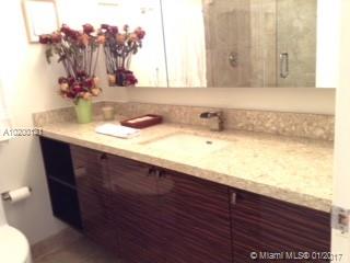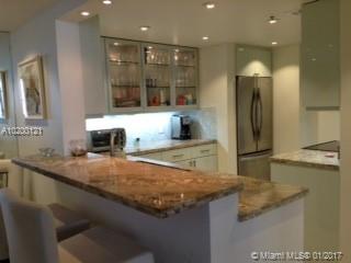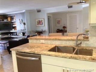 Beautiful 2 BR/2BA Top of line Kitch. reno w/new cabinets/stainless steel appliances/ stone countertops+ undermount sink+ bfast bar+ LR built ins+down lighting+ceiling fans+built in master closet+ renovated MBR Bath w/dbl undermount sinks glass tub/ shower enclosure/gorgeous glass tiles+ new vanity+ renovated guest bath+1 unassigned parking space + 1 assigned space +balcony+impact glass + Annual Fee to Master Association= $483.09+ Monthly maintenance = $946.00 App. Fee= $150