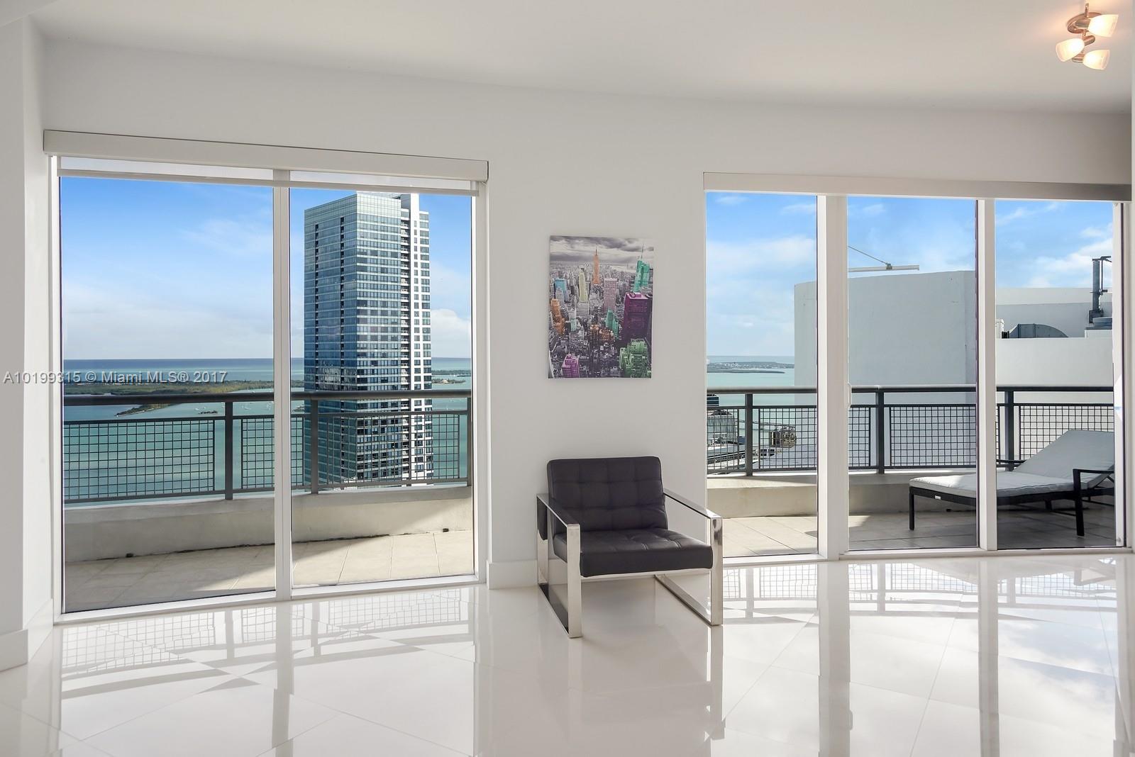 Rare opportunity to own the largest penthouse at the Infinity. Enjoy magnificent panoramic views of the ocean, bay & Miami skyline from one of 4 balconies at this one of a kind SE corner Penthouse. Spread across two floors & featuring a floor plan unlike any other, this soaring sky home showcases 2 spacious bedrooms located at opposite ends plus a convertible den, 20ft ceilings, massive windows w/ electric blinds throughout, an abundance of natural light and access to a semi-private rooftop deck & spa.