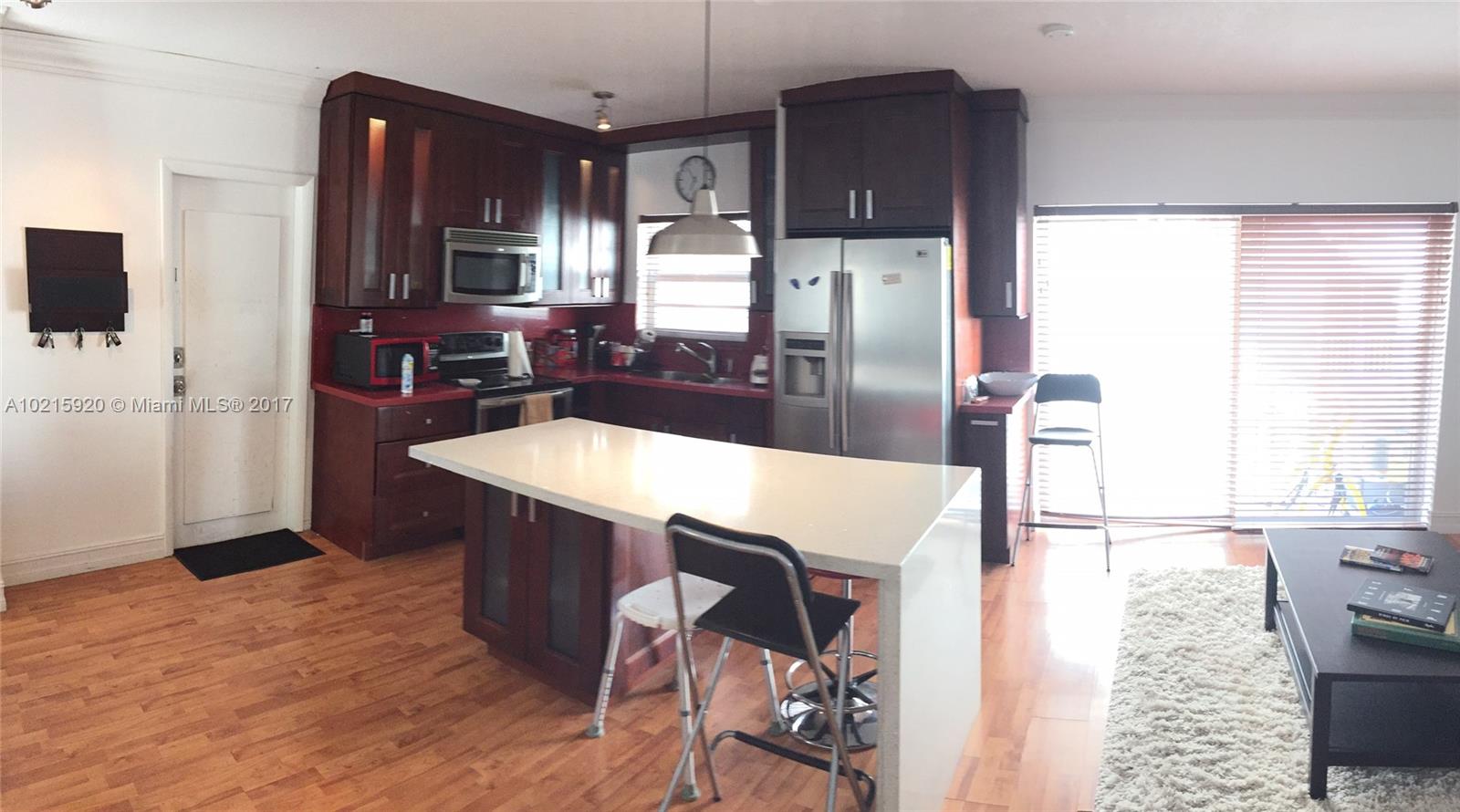 Remodeled second floor corner unit with balcony. Modern and bright, open space with a big kitchen island. Wood floor in the open space and the bedroom. Stainless steel appliances, walk to 5th street,the beach, restaurants and Publix. Great unit, very well maintained in a quite area will not last. Common laundry room in the building. Parking can be assign by seniority according to the availability in the building. PLEASE SEE BROKER REMARKS FOR SHOWING