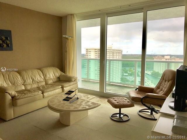 This Sunny Isles unit is on the 21st floor with a breathtaking intercoastal and city view. Spacious 2 bedrooms 2 bathrooms with dual sinks in master bathroom. Large balcony to enjoy the view. Impact sliding doors. The building is located in a gated community. Amenities include: pool, tennis court, docks available for rent, restaurant, laundry room, exercise room, sauna and much more... Beach access right across the street.