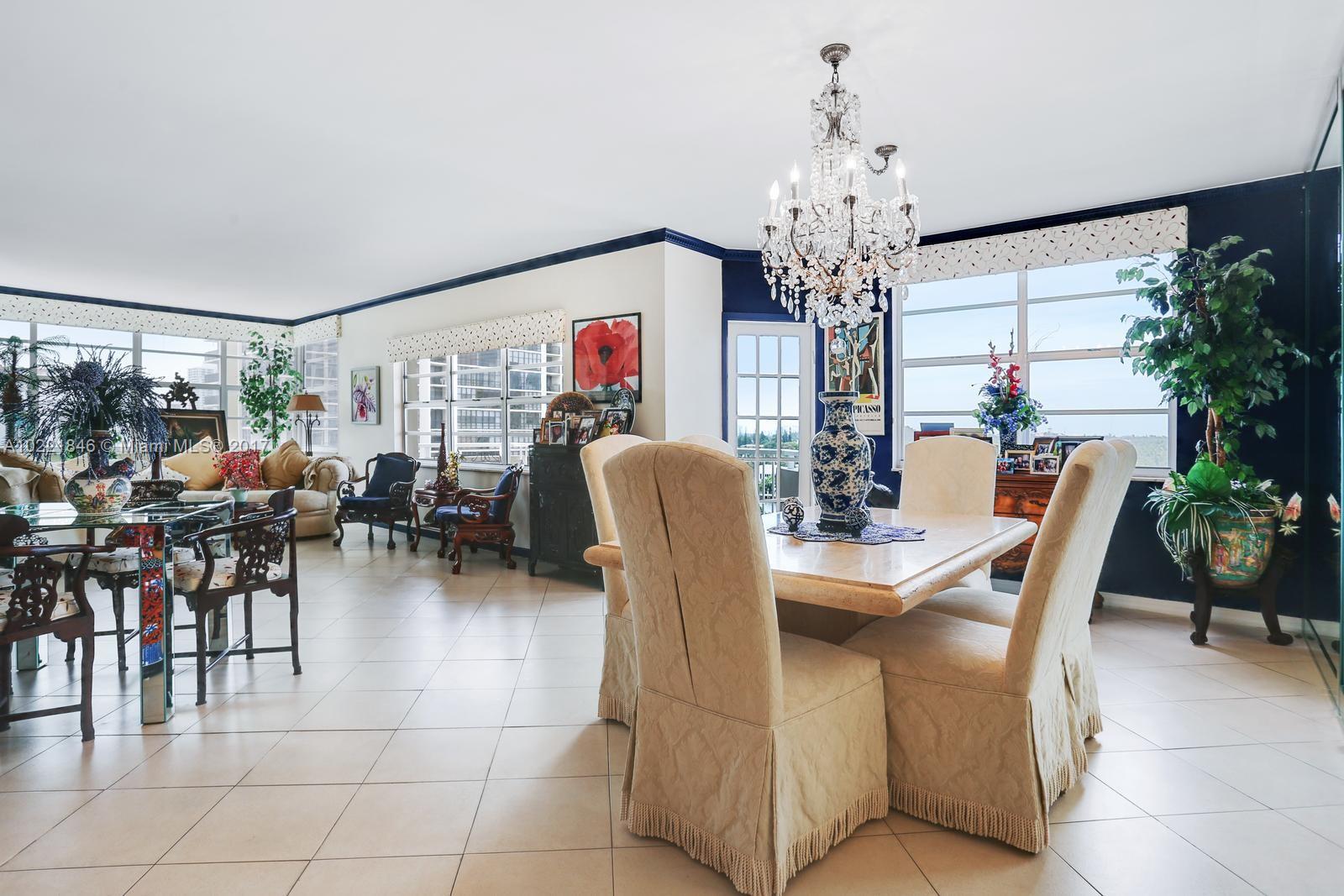 CORNER UNIT. Large 3 bedroom 2 1/2 bath corner unit on the southeast corner overlooking the intra-coastal and city views. Remodeled kitchen, lots of storage space. Professionally decorated. The building has awesome amenities including a private beach, 2 restaurants, tennis courts, basketball courts, 2 pools, 2 exercise rooms, beauty salon, 24/7 security, mini mart, dry cleaner and even a synagogue on premises. The monthly maintenance includes A/C, cable and much much more.