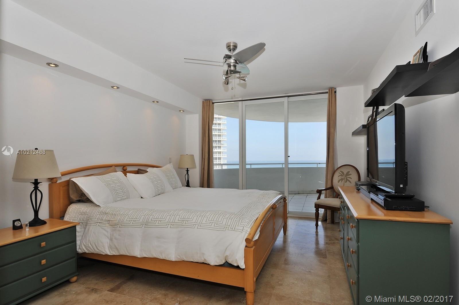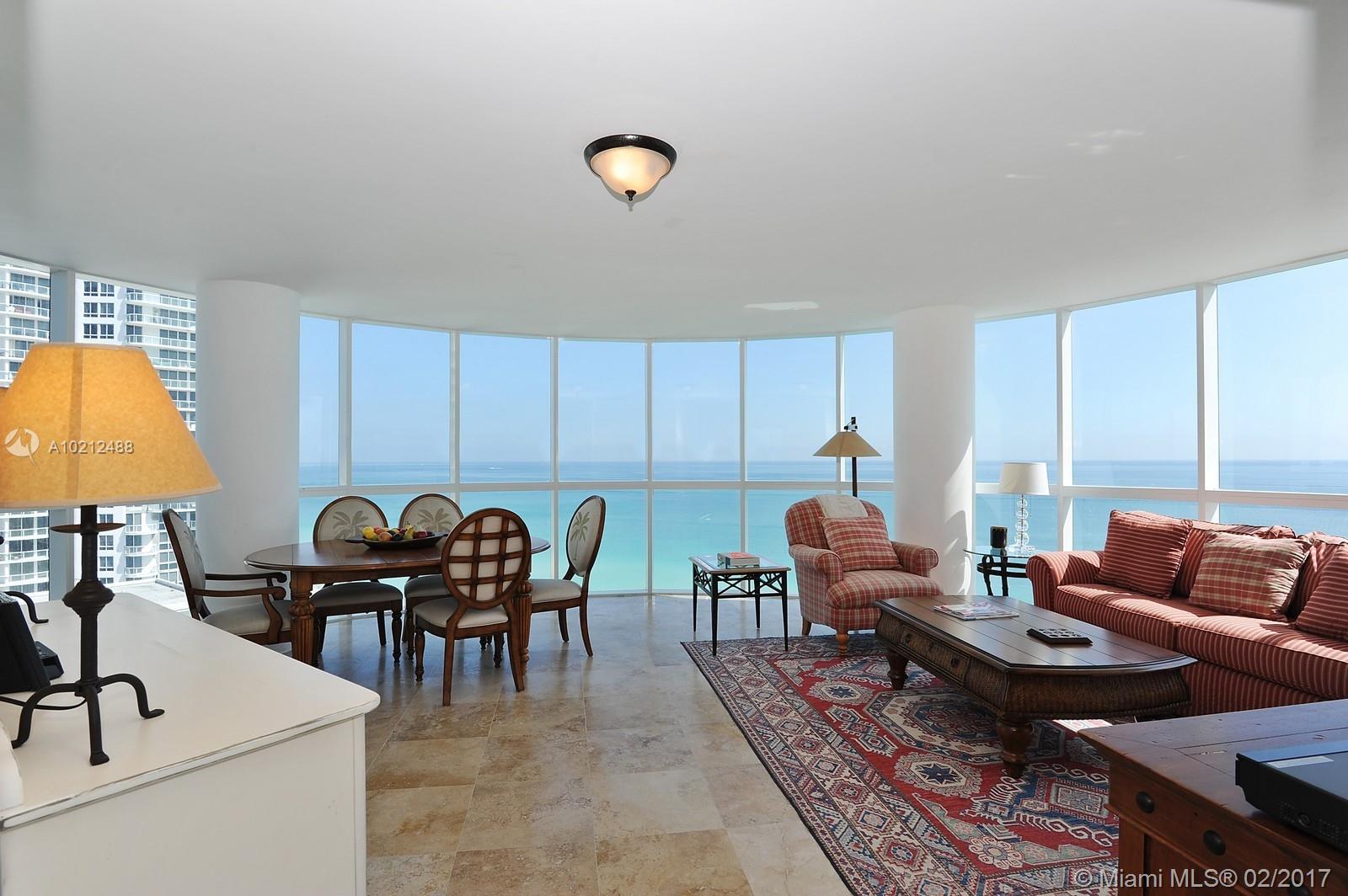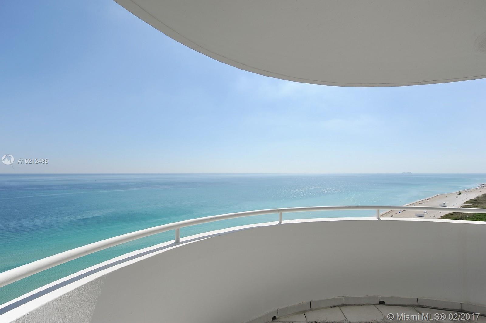 Stunning Direct Ocean Views! Picturesque 210 degree views of Ocean & Bay. Enjoy sunrises from 2 large balconies. This 3Bd/3Ba residence features rounded living/dining room with floor to ceiling glass! The master suite includes a huge walk in closet, master bath with Jacuzzi tub & separate shower. A beautiful beachfront full service bldg with 24hr concierge, Pool, Sauna, Gym, Yoga Room, Valet, Child Playground, Party/Game room, 2 assigned parking spaces with extra outside storage. 1700 square feet.