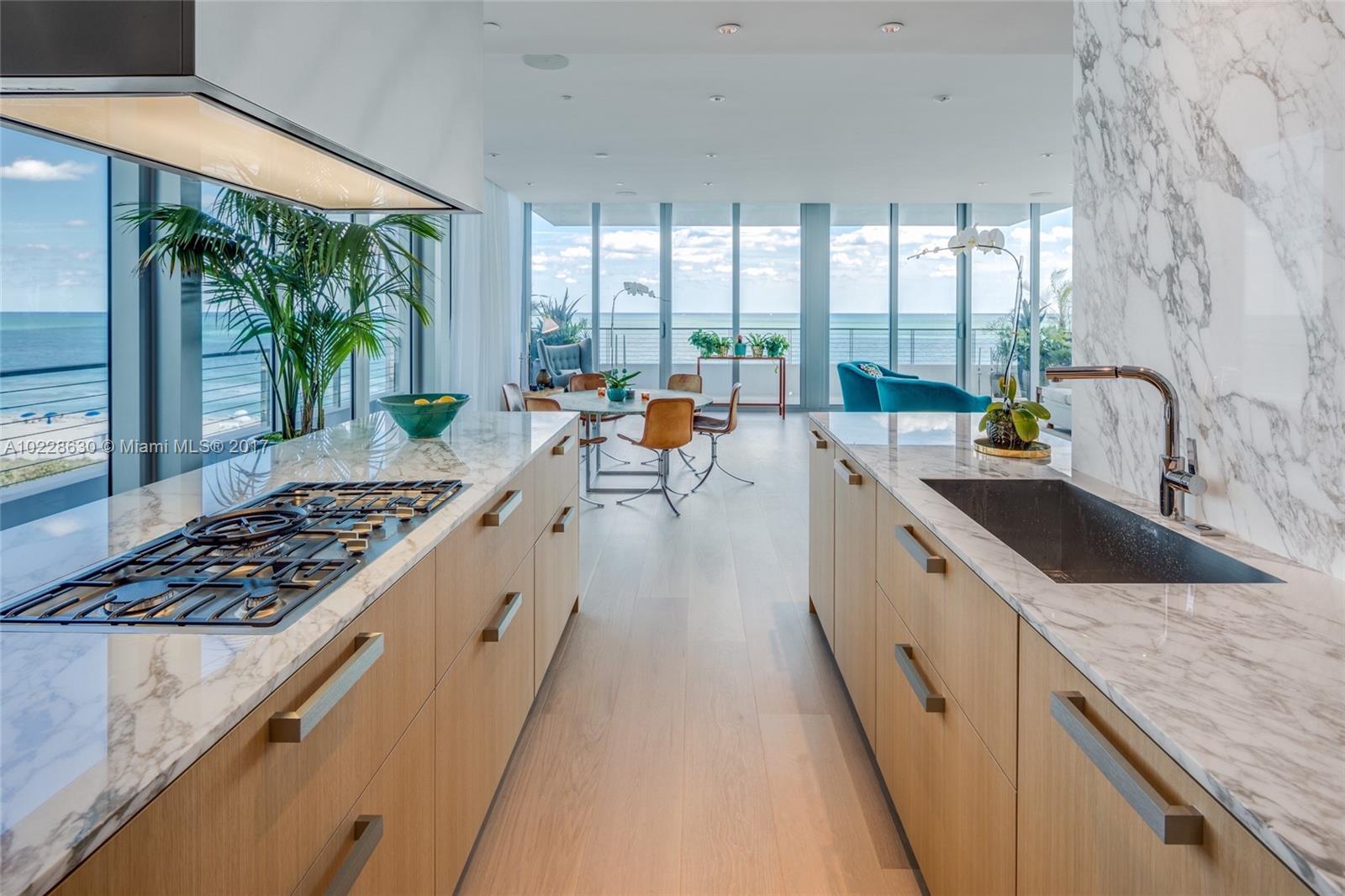 Exquisite & rare concept boutique condo right on the beach! Only 8 residences in building! This 4 BD/ 4 BA full floor residence features floor to ceiling windows, full home automation, audio speakers throughout, expansive private terraces w/ panoramic ocean views. Gourmet kitchen w/ high-end appliances, gas ranges, Boffi cabinetry, double-ovens by Miele, countertops & backsplashes in Calacatta Gold stone. Amenities including 24 hour security, 2 parking spaces, private cabana, fitness center & much more!