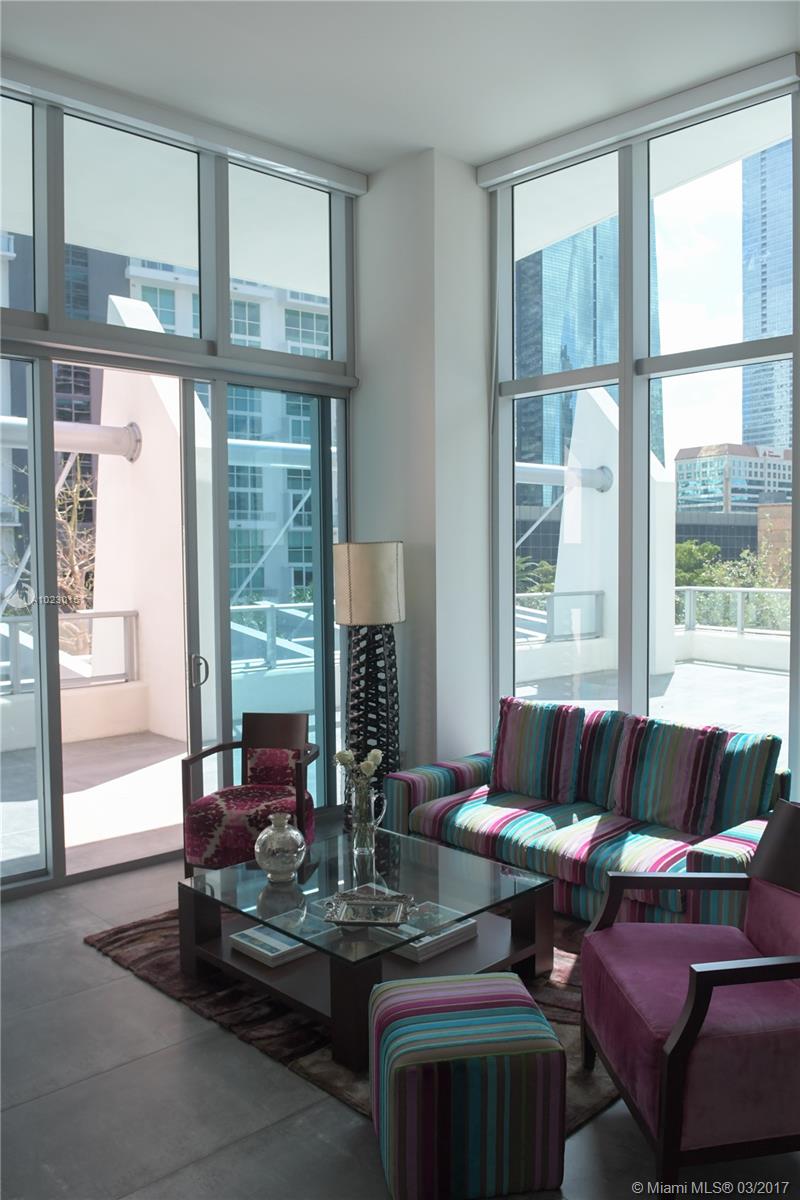 Create your paradise on 1,500 sq ft patio & enjoy the view from double height windows.This extravagant high ceiling condo features Italian cabinetry,quarts counter tops & rainfall showers,complemented by additional upgrades such as Italian porcelain tile floors,electric shades.Like a luxury house in the heart of Brickell.Same floor parking-no elevator wait.