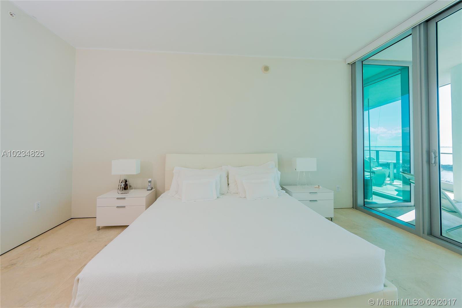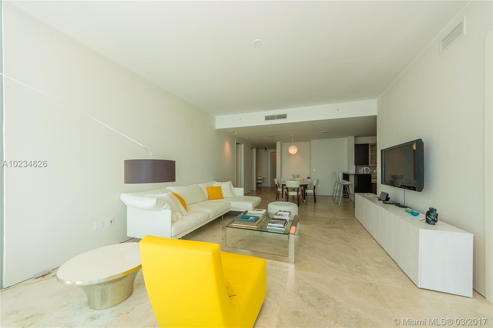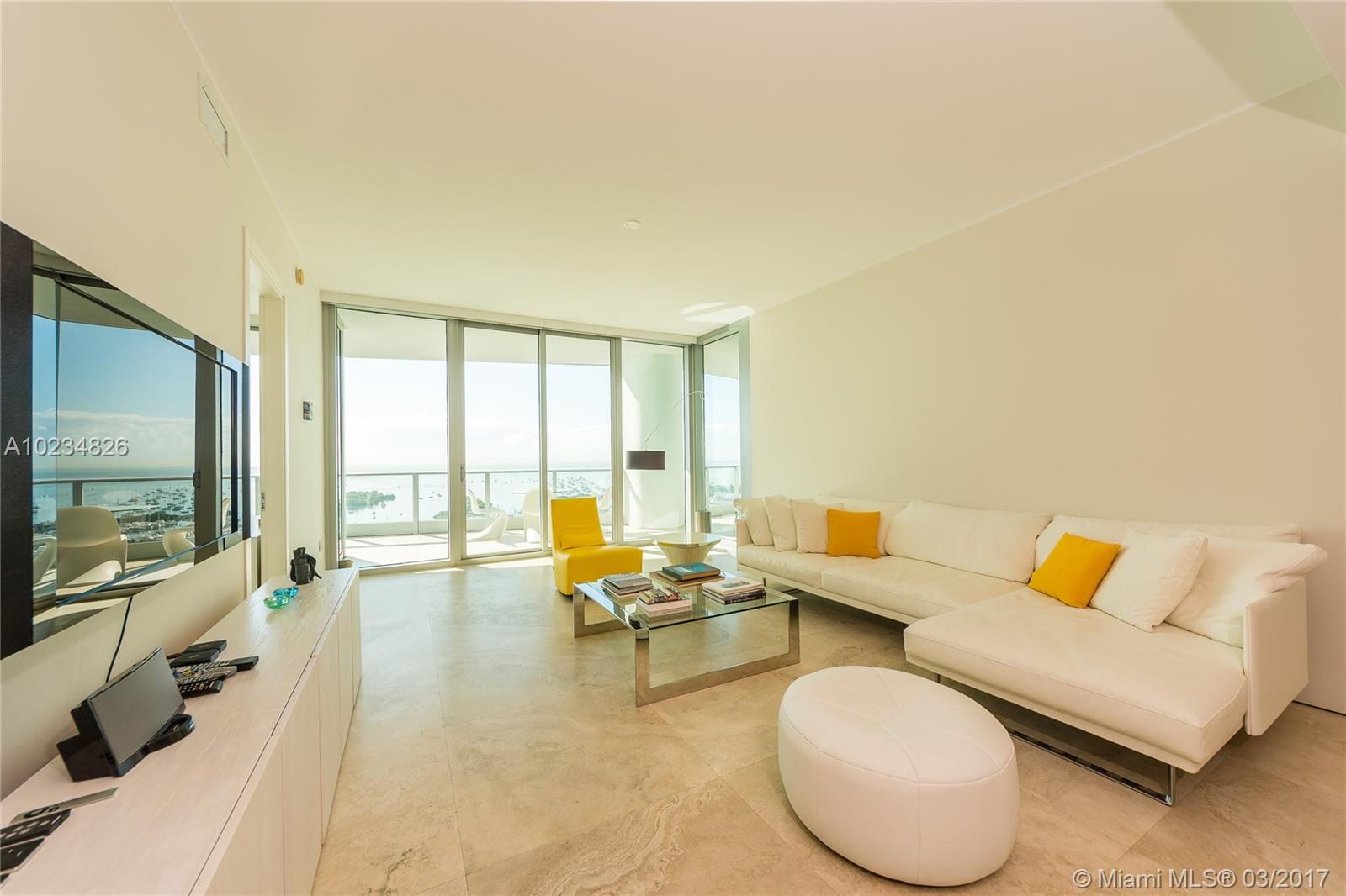 Amazing direct water vistas over Sailboat Bay from this high-floor residence with 10 ft ceilings. Private elevator opens directly into your personal foyer (no hallways in the building). Stunning unobstructed views upon entry. Large Italian 36 “ x 36 “ travertine marble flooring throughout is the neutral canvas for this simple, modern, elegant living space. Powered shades in all rooms (black-outs in bedrooms) & two parking spaces.