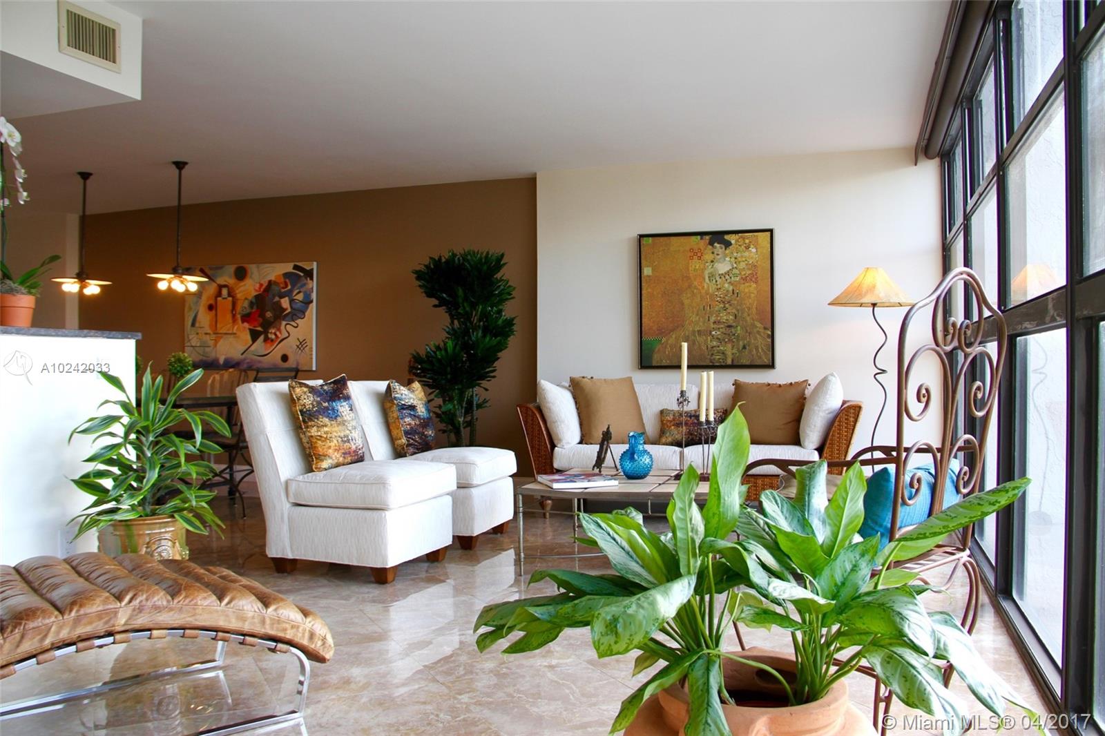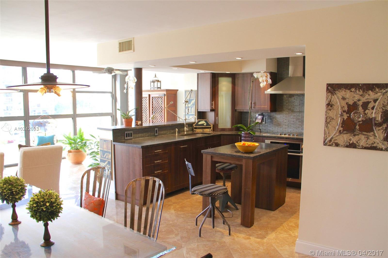 One of the most beautiful units in the building, with magnificent water views of the Intracoastal. This amazing unit has been remodeled with the wall between the kitchen and dinning room removed for a gorgeous open area. The kitchen has state of the art luxury appliances, wine cooler, sliding kitchen storage unit, new remodeled bathrooms, electric window shades on all windows, and on-demand water heater. Two storage units and one parking space are assigned to the unit. The building features 2 lobbies with 24/7 concierge, semi olympic pool, sauna, 2 tennis courts, state of the art gym, huge multipurpose room, library, game room, billiards and ping pong, clubhouse and more!.