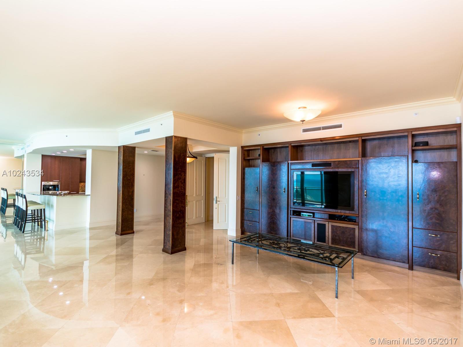This flo Thru 3 bedroom 3 1/2 bath apt. in the sky has breathtaking views in every direction and over all buildings. on the 22nd floor of One Bal Harbour. There is an open kitchen with appliances of the highest quality, 2 huge 10foot deep terraces that are each 45 feet wide offering unobstructed views of ocean, bay and city from every room. Marble floors throughout. Building with incredible new pool and pool area with private beach service. ! APARTMENT COMES WITH 4 GARAGES SPACES! "07" line rare available on such a high floor.