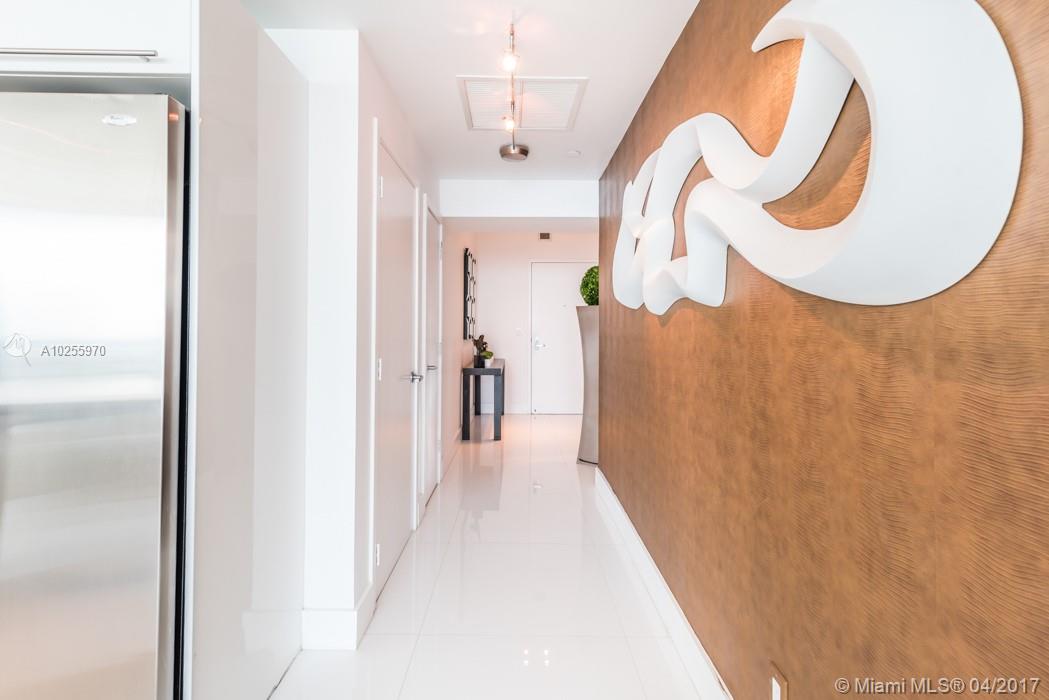 Mesmerizing views await you from this 1,334 sq/ft 2/2.5 high floor 08 line. This well appointed unit has 36-inch white glass tile throughout, Custom wallpaper & lighting & motorized solar and blackout shades. The kitchen is finished with quartz countertops including the kitchen island, stainless steel appliances & backsplash. Enjoy the stunning sunrises & 270 degree views of the bay, ocean, downtown & Brickell from the floor to the ceiling windows in every room.