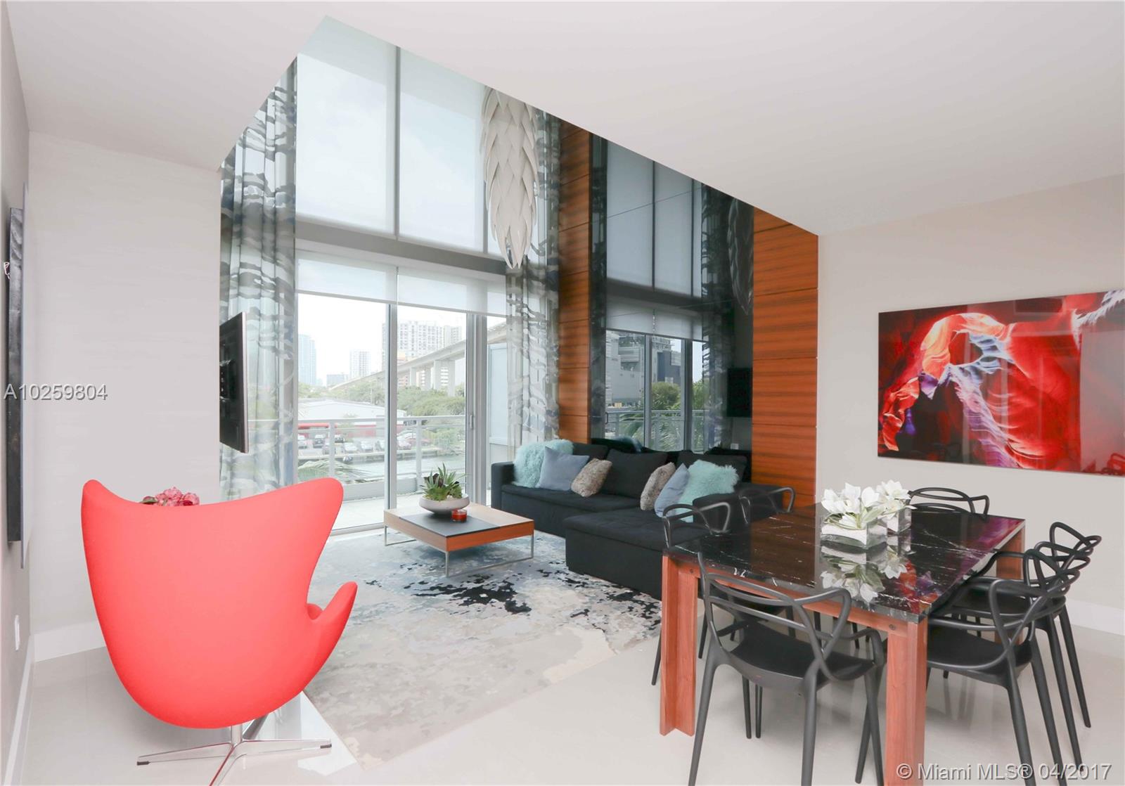 Spectacular decorator furnished 3br/3ba, 2 story townhouse with double height ceiling in living room. Panoramic and unobstructed view of the Miami River, Fancy Brickell City Centre and Brickell Skyline. Porcelanato throughout, all built in closets,parking space on the same floor, seller has spared no expense, property is full of upgrades. Designer furniture and amazing modern artwork including pieces by Sam Rodriguez. Great opportunity to own a jewel in the heart of the city. Walking distance to Brickell City Centre and Downtown.