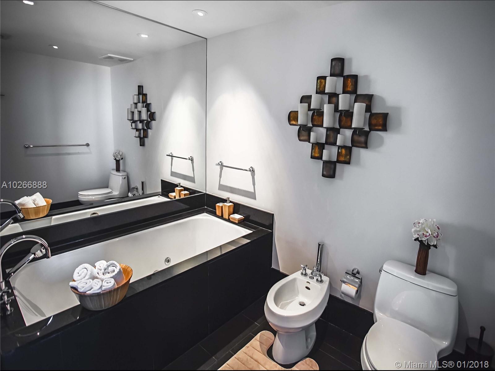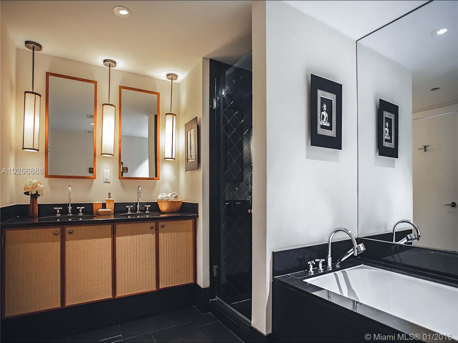 2 bedroom, 2 full bath, 1,407 sq. ft. condo is located in the The Setai Hotel. Direct panoramic ocean views. Wrap-around balcony. Sound proof windows and doors. Ocean Views from every bedroom! Teak and black granite floors in the hallways, kitchen and both bathrooms. Hardwood floors in the living room and both bedrooms. Master bathroom has granite countertops, a jacuzzi tub, 2 vanity sinks, and a separate rainfall shower. Guest bathroom has granite counter tops, a separate rainfall shower and a vanity sink.