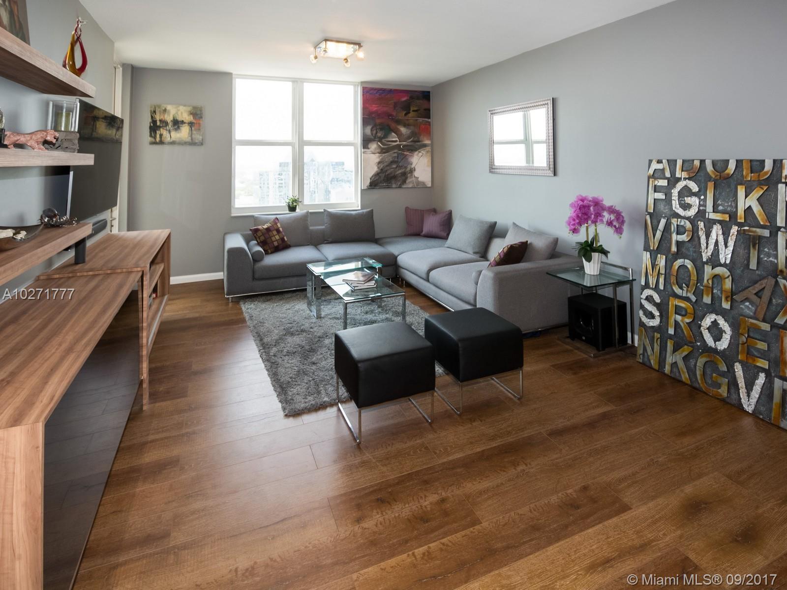 EXQUISITELY FULLY REMODELED HIGH FLOOR 2/2 UNIT WITH VIEWS OF THE OCEAN AND PORT. High quality built-in furnishings, custom hardwood floors thru-out, upgraded kitchen and bathrooms. New custom doors enjoy easy living. Live in the heart of downtown on the river. Resort style amenities: Fitness center, sauna, rooftop pool, racquetball/basketball court. Walk to Las Olas minutes to beach & major roads.
