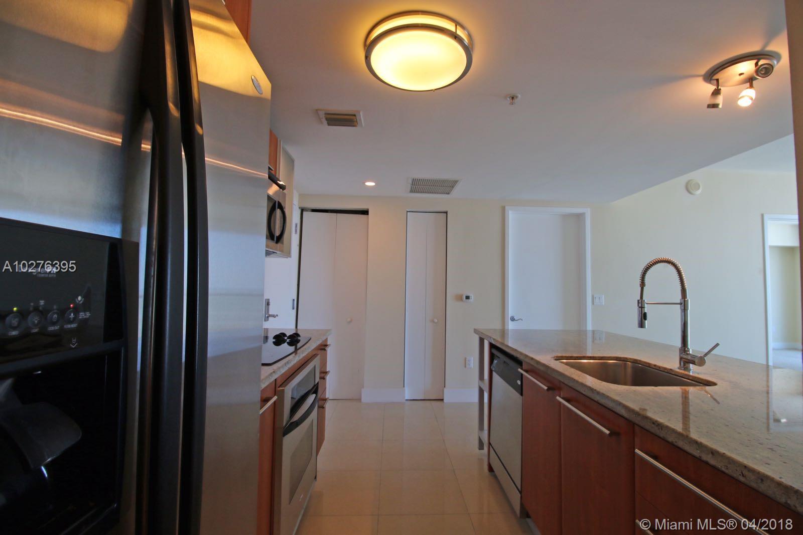 CLICK ON VIRTUAL TOUR Two bedroom, two bath unit on a high floor. Split floorplan Carpeted bedrooms, porcelain flooring in main living area. Open kitchen with granite countertops, stainless steel appliances and wood cabinets. Entirely painted one year ago. Panoramic views of city lights, Biscayne Bay and west Sunsets. Walk to restaurants, groceries etc. ideally located on the River. Walk to Brickell City Center.
