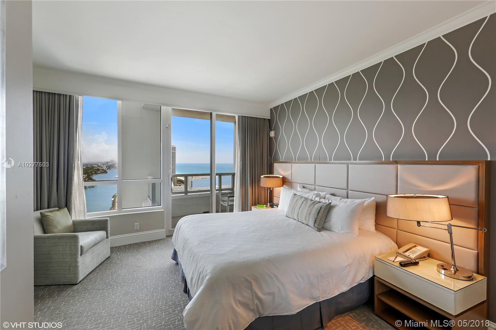 Beautiful 1 Bedroom/2 baths w/ ocean, intracoastal & city views at the Fontainebleau II. Enjoy full service, vacation-style living in a furnished turnkey unit with king bed, sleeper sofa & more. Enroll in hotel rental program & receive income while away! The Fontainebleau Resort offers luxury amenities on 22 oceanfront acres including award-winning restaurants, LIV night club, Lapis spa & state-of-the-art fitness center. Maintenance includes: AC, local calls, electricity, valet + daily free breakfast in the owner’s lounge.