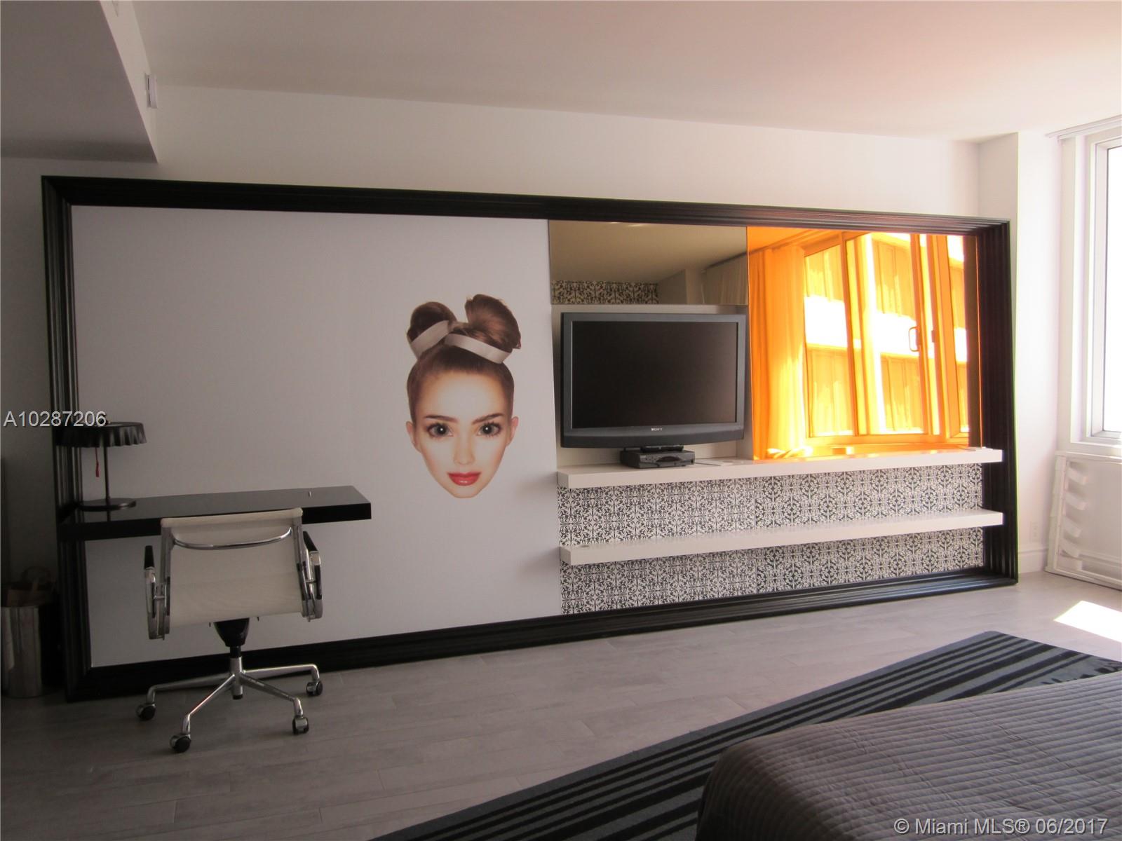 large 1 bedroom at mondrian hotel , separate masterbedroom with tv , living room with new sofa bed and other tv , kitchenette fully equipped , skyline view , laundry facility in the building , valet parking for free , maintenence include , pool , jacuzzi , gym , concierge, front desk , no in the hotel rental program , you can rent by yourself or sign the hotel program