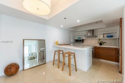 Remodeled 3 bedroom, 2bathroom with 2 parking spaces with direct spectacular wide bay views. Only 3 bedroom currently on the market at the Floridian on the west side.Condo was gutted 6 years ago and just remodeled in part now. Split bedroom plan. Open kitchen, with limestone floors throughout. Caesarstone countertops in the kitchen and bathrooms. New Wolf cooktop, and new microwave and new Dornbracht faucet. Bathrooms are all white. Bathrooms custom made mirrored medicine cabinets. New circular white penny tiles on the floors (delicious to walk on).
