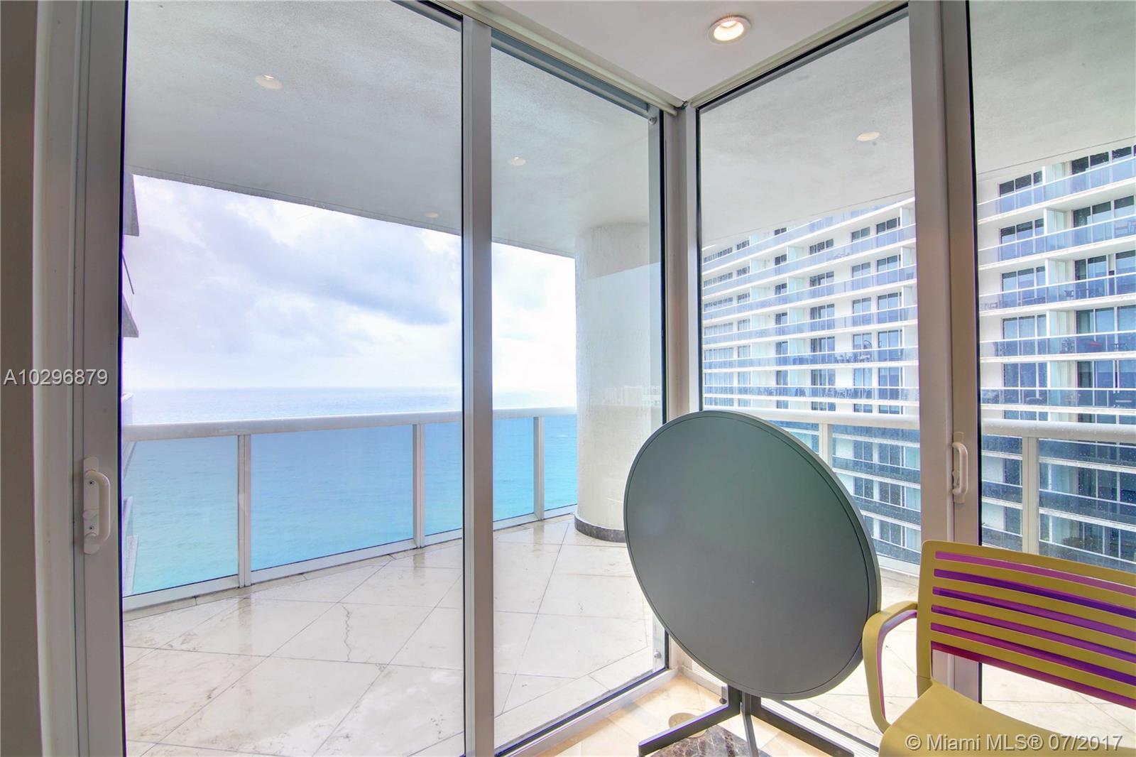 Enjoy resort- style living in this spacious 2 beds/ 2 baths waterfront condo with private beach access. Marble flooring throughout. Oversized master walk-in closet. Convenient motorized roller shades! Beautiful modern open-style kitchen with stainless steel appliances. Laundry room. Wraparound balcony plus a second private balcony in master bedroom. Building features amazing amenities including: gym with direct ocean views, spa, hot tubs, pools, bar, towel/beach chair service, and much more! Sale includes 1 parking space plus 1 valet parking and 2 large storage lockers.