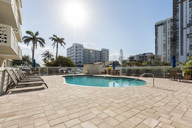 Beautiful remodeled all tiled 2/2 corner unit steps to the ocean. This is your two bedroom at the beach, priced for quick sale. ALL TILED, updated modern granite kitchen with mosaic backsplash. Large bedrooms -master with a large walk in closet. All tiled bathrooms. Balcony with ocean view. Bedrooms have views of intra-coastal. ALL IMPACT WINDOWS. Building has just finished major construction. New pool, storage rooms. Newer hot water heater, central a/c. ALL AGES- NO LEASING - SMALL PET ALLLOWED.